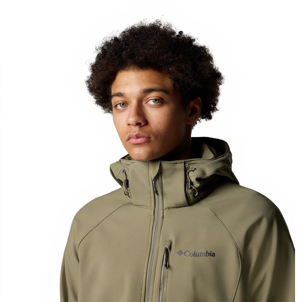 Водонепроницаемая куртка для пешего туризма из материала софтшелл со съемным капюшоном.