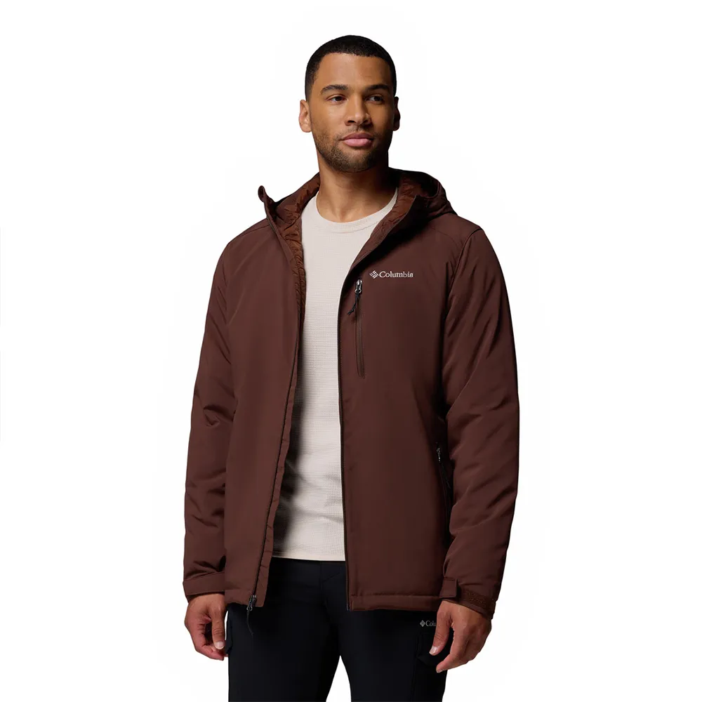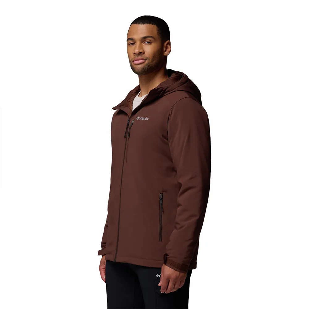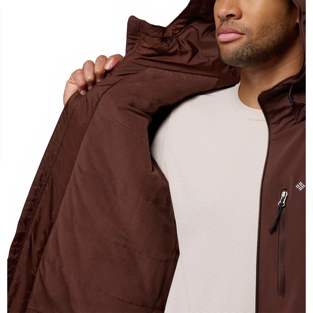 Мужская куртка Columbia Gate Racer — это утеплённая куртка из софтшелла с флисовой подкладкой, съёмным капюшоном и карманами на молнии для рук и рук.