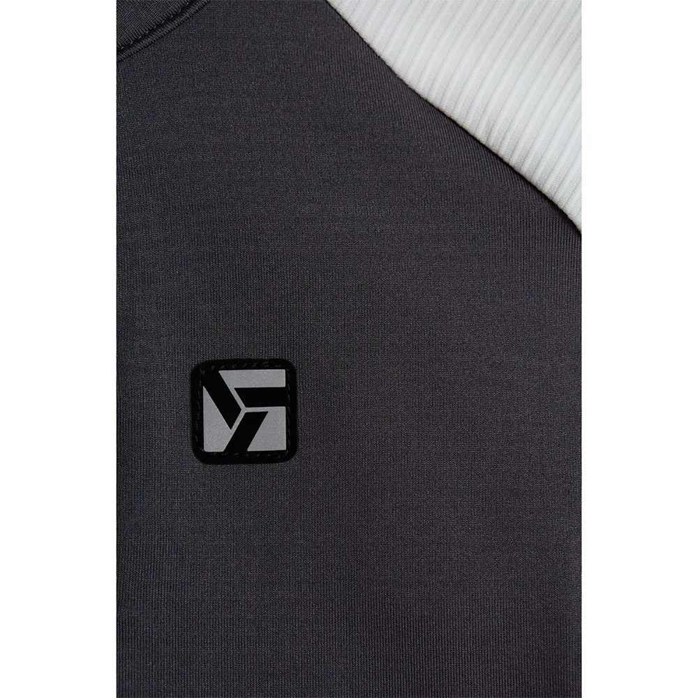 Спереди застежка-молния ¾, а на левой стороне груди вшитый карман на молнии со светоотражающим элементом.