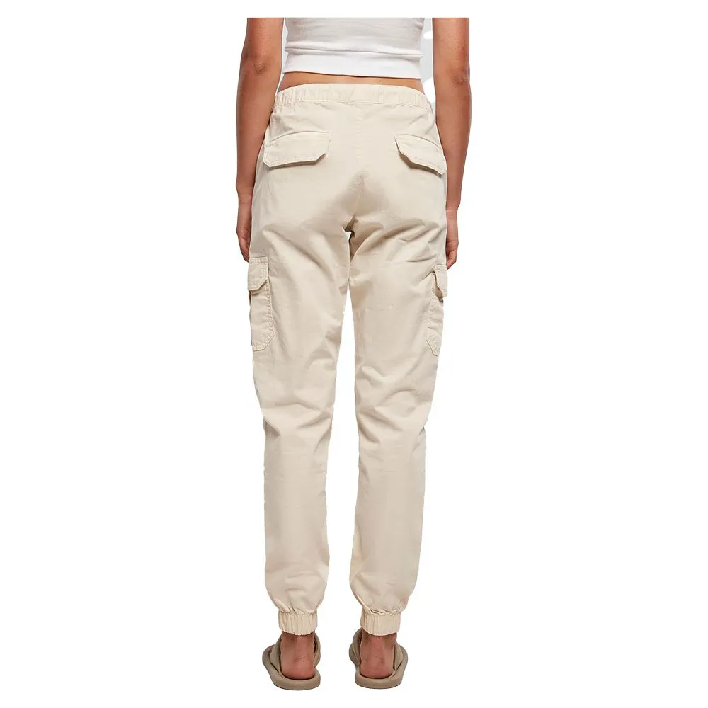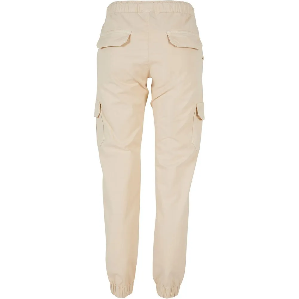 Женские спортивные брюки в стиле карго. Эти женские спортивные брюки имеют эластичные манжеты на штанинах и эластичный пояс со шнурком. Карго-карго на бедрах придают женским джоггерам городской стиль. Спортивный стиль дополняют два задних кармана с клапанами. Удобные брюки-карго имеют стандартный крой и изготовлены из слегка эластичной саржи.