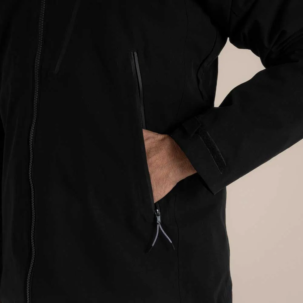 - Эластичная ткань рипстоп из переработанного полиэстера с мембраной AquaDry и водоотталкивающим покрытием H2OShield, эластичная ткань рипстоп из переработанного полиэстера с эластаном Dynamic 12000 и подкладка из тафты из переработанного полиэстера. Переработанная лента-молния на внутреннем кармане и молниях в области подмышки.