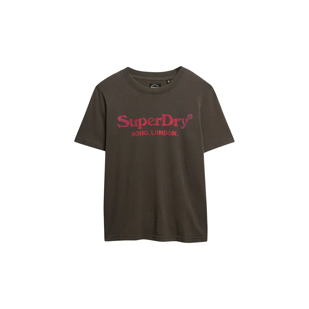 Ищете обновление гардероба? Вот она, наша свободная футболка Venue Metallic, созданная с идеальной свободной посадкой и забавным, стильным декорированным графическим текстом на груди.