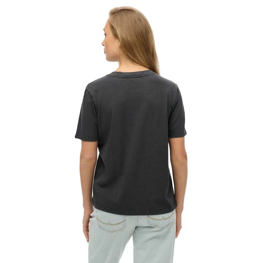 Наша свободная футболка с винтажным логотипом и металлическим принтом — это элегантная повседневная футболка, которая идеально подойдет для того, чтобы оживить ваши повседневные образы. Носите ее с любимыми джинсами и объемной курткой для создания идеального сдержанного образа.