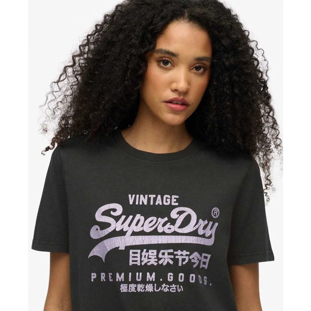 Наша свободная футболка с винтажным логотипом и металлическим принтом — это элегантная повседневная футболка, которая идеально подойдет для того, чтобы оживить ваши повседневные образы. Носите ее с любимыми джинсами и объемной курткой для создания идеального сдержанного образа.