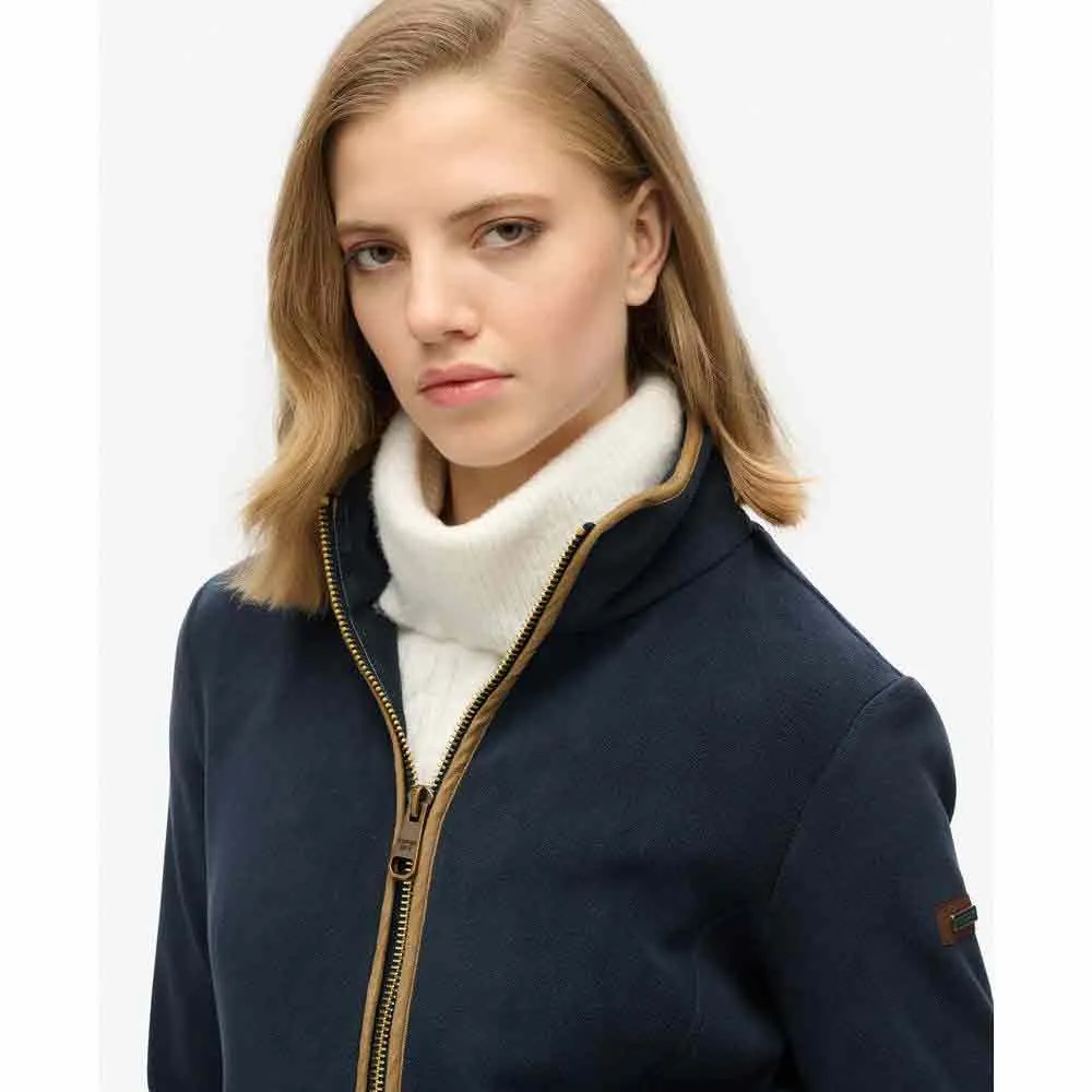 - Застежка на молнию с высоким воротником и длинными рукавами.