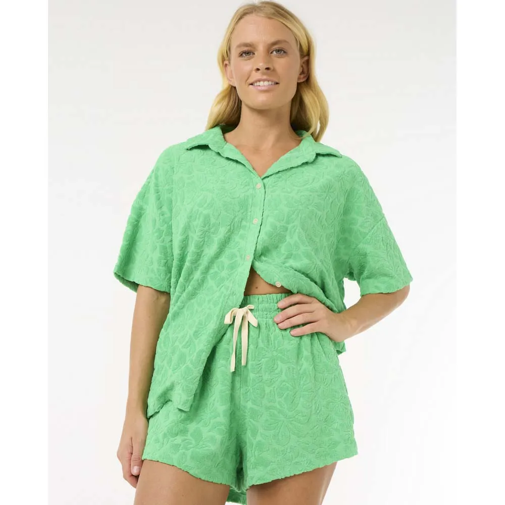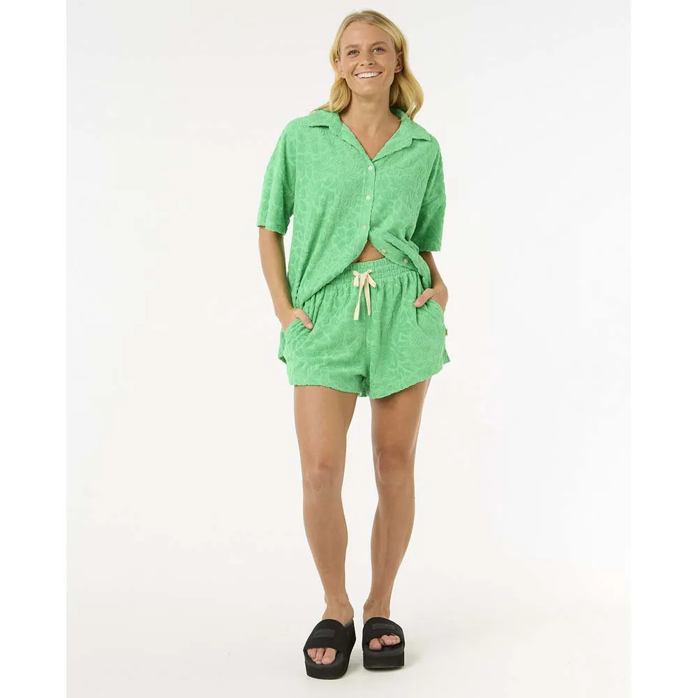 Махровые шорты Las Dalias изготовлены из мягкого махрового махрового материала с отделкой, пригодной для стирки в готовом виде.