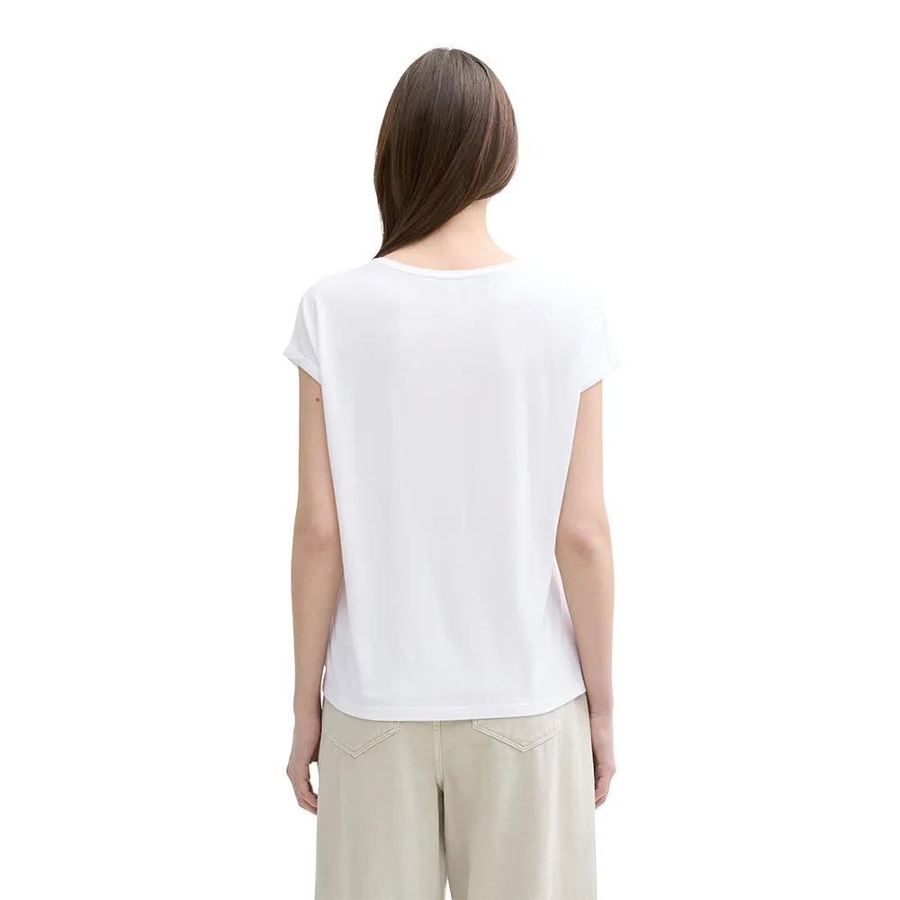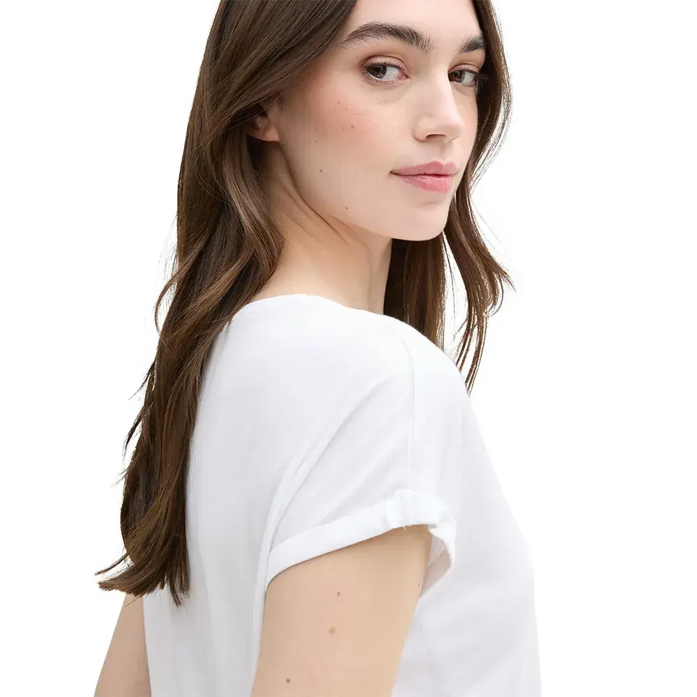 Обновите свой повседневный гардероб с помощью стильной футболки TOM TAILOR Fluent Basic с коротким рукавом. Эта женская футболка — универсальный и незаменимый предмет гардероба, идеально подходящий для создания множества образов: от повседневных нарядов для выходного дня до элегантных повседневных ансамблей. Ощутите максимальный комфорт и стиль благодаря удобной посадке и превосходному качеству.
