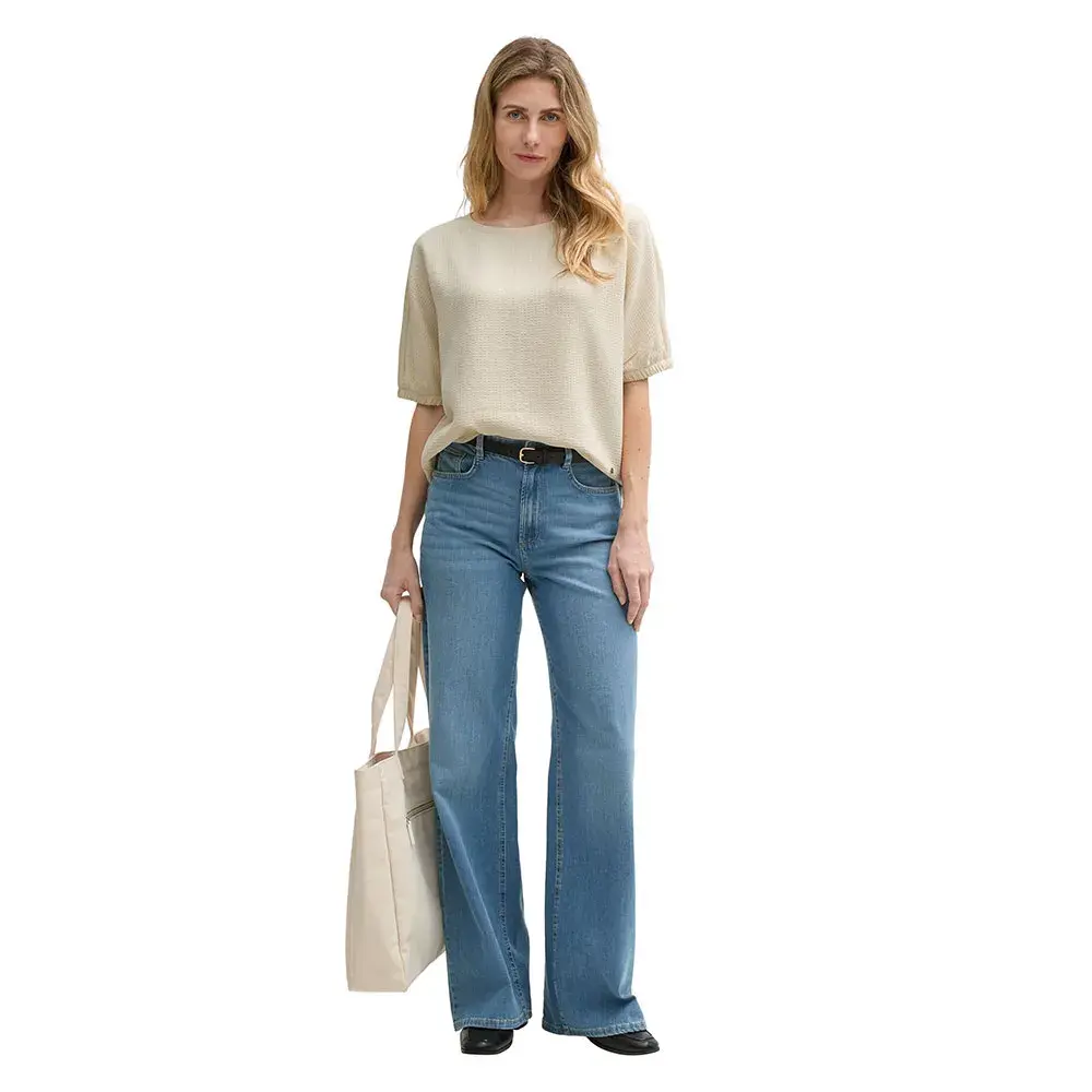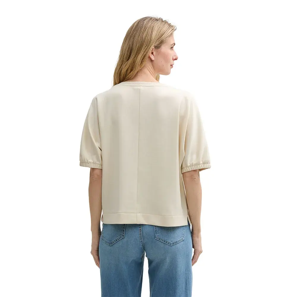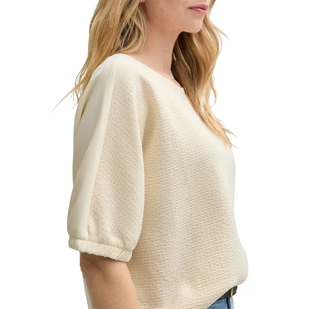 Толстовка с короткими рукавами из смеси материалов: спереди — фактурная ткань сирсакер, сзади — мягкая ткань скуба.