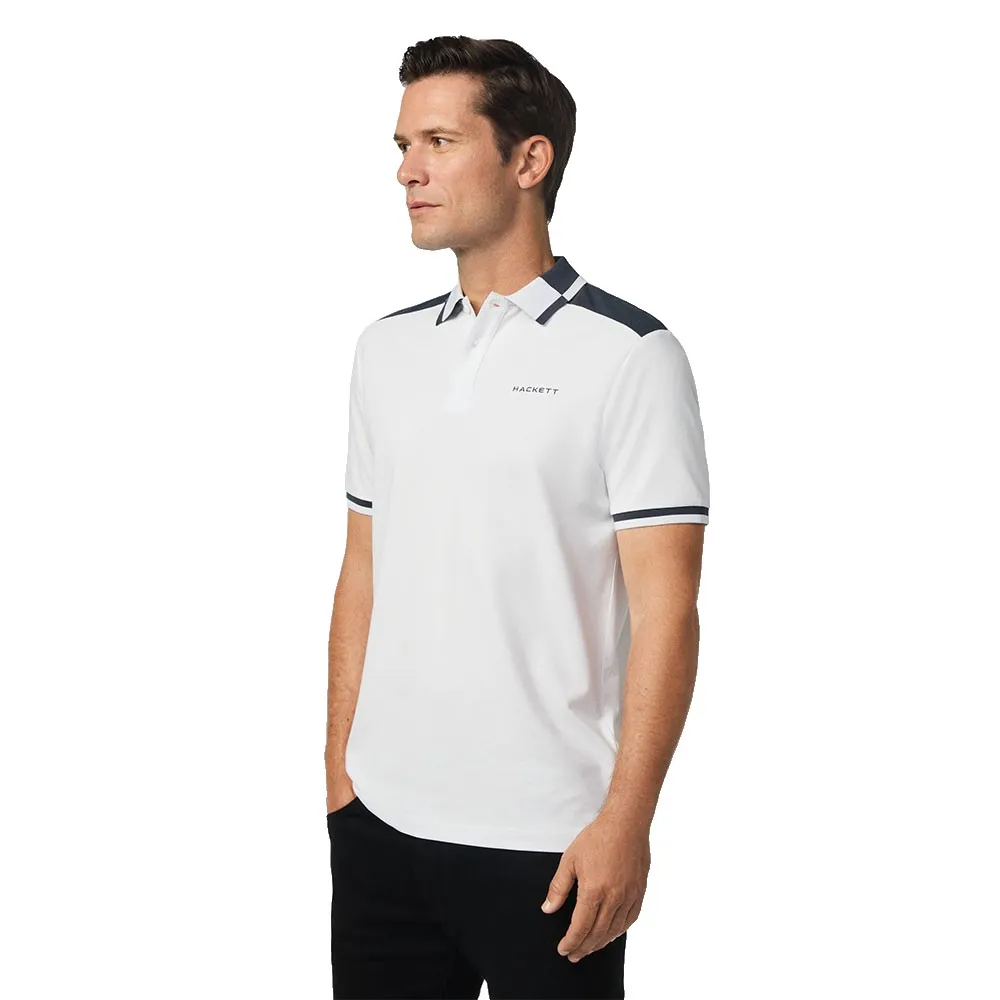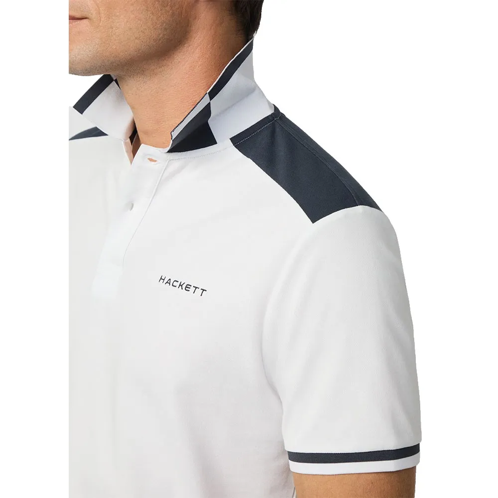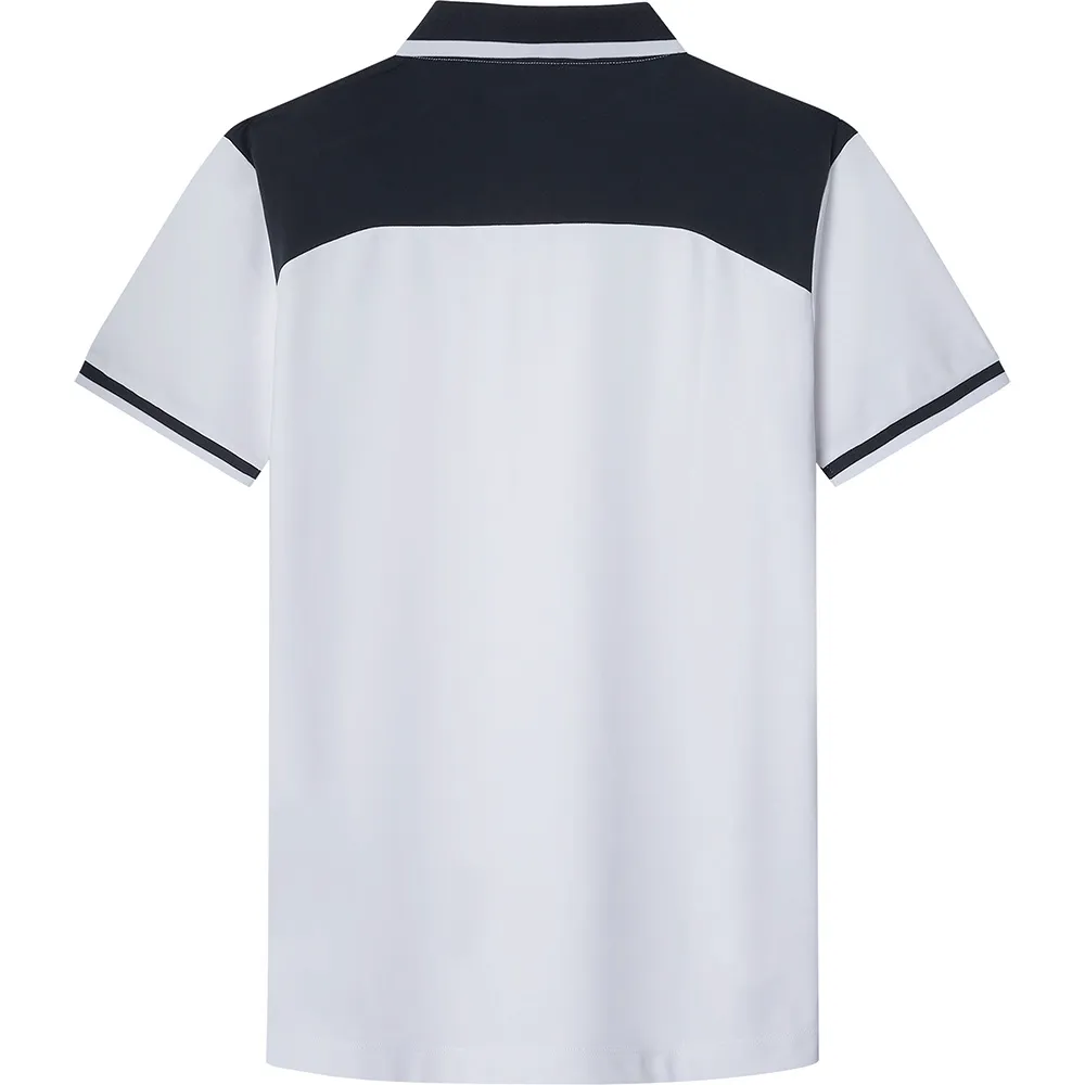 Плоский трикотажный воротник дополнен фирменной сезонной окантовкой на воротнике и манжетах контрастного цвета.