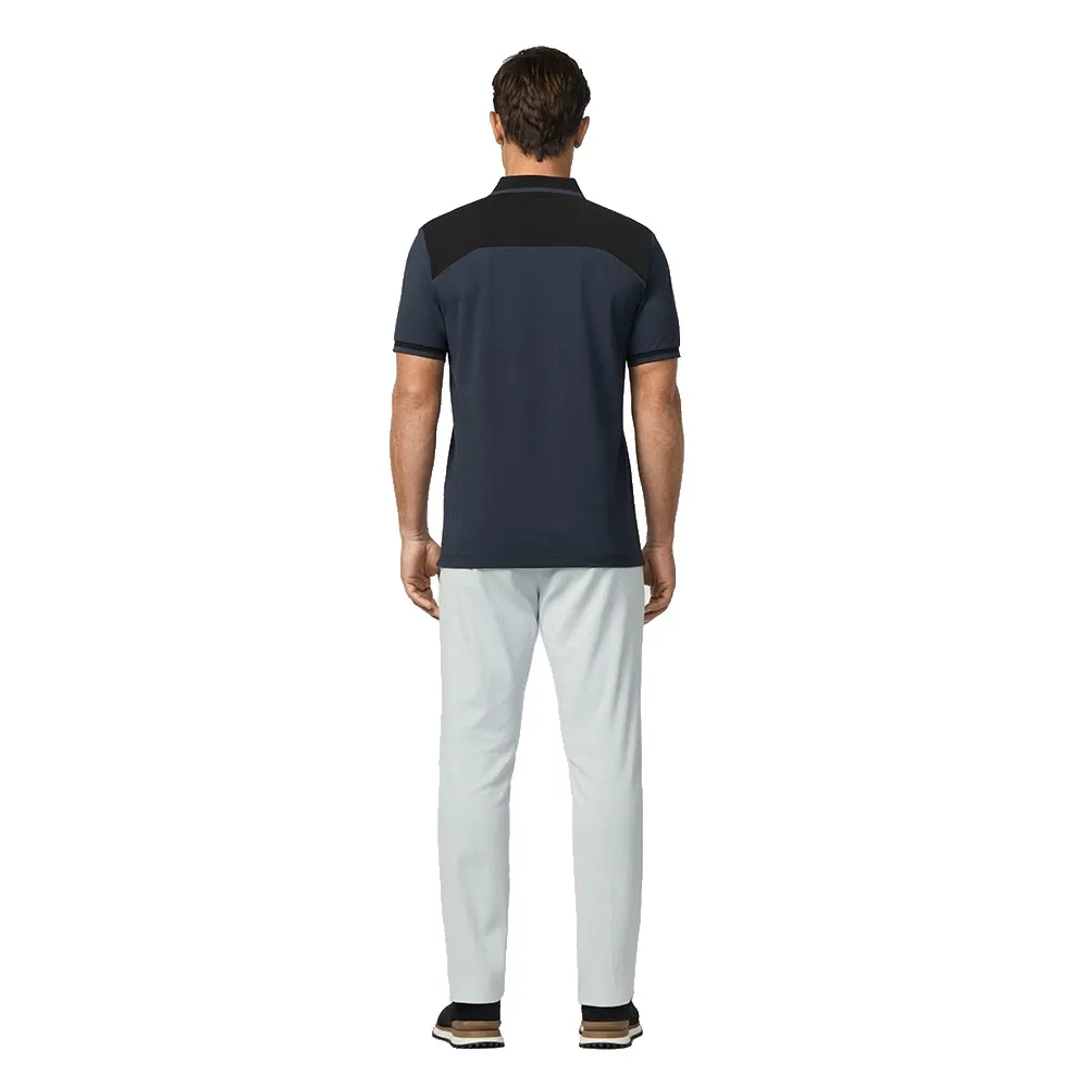 Плоский трикотажный воротник дополнен фирменной сезонной окантовкой на воротнике и манжетах контрастного цвета.