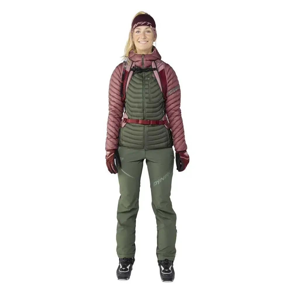 Теплая и легкая для ски-тура в холодные дни. Легкая, дышащая, утепленная — для скоростного тура и гонок. Тепло при минимальном весе: женская куртка с капюшоном Radical Down RDS выигрывает благодаря водонепроницаемому пуху для любого ски-тура. Эта пуховая куртка — популярная классика в коллекции DYNAFIT для ски-тура и обязательная вещь в любом шкафу. В холодные дни она надежно согреет вас и обеспечит впечатляющий комфорт. Это достигается за счет премиального гусиного пуха 800 fill, сертифицированного RDS, с объемом 800 кубических дюймов и соотношением пух/перо 95/5. Пух хорошо известен своей превосходной способностью к изоляции при очень малом весе и небольшом размере упаковки. Единственной слабостью пуха является и остается его чувствительность к влаге. Когда пух намокает, он сбивается в комки и теряет свою пышность, тем самым теряя свою способность к изоляции. Именно по этой причине премиальный гусиный пух, используемый в куртке Radical Down Hooded Jacket, обработан DOWNTEK. Водоотталкивающая обработка DOWNTEK позволяет пуху сохранять свою плотность и пышность даже при воздействии влаги, и, таким образом, он продолжает греть вас. Кроме того, пух быстрее сохнет и его можно стирать в стиральной машине без потери качества. Для дополнительной защиты от непогоды легкий нейлоновый внешний слой является ветро- и водонепроницаемым. Эластичные боковые вставки под мышками обеспечивают улучшенную воздухопроницаемость, регулировку температуры и свободу движений. Эластичный подгиб и манжеты удерживают куртку на месте, предотвращая проникновение холодного воздуха и утечку тепла. Оба передних кармана и нагрудный карман позволяют хранить мелкие предметы первой необходимости и согревать руки на вершине. Благодаря небольшому размеру эта пуховая куртка поместится в любой рюкзак, что гарантирует ее использование в любом туре. Куртка Radical Down Hooded Jacket спортивного кроя отлично подойдет не только для горнолыжных туров, но и для занятий альпинизмом, повседневной носки и прогулок по городу. Куртка с капюшоном Radical Down – всегда теплая, популярная во всем мире.