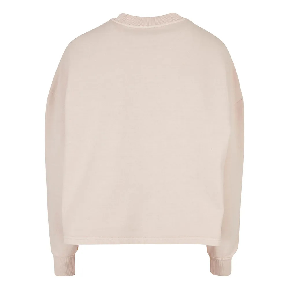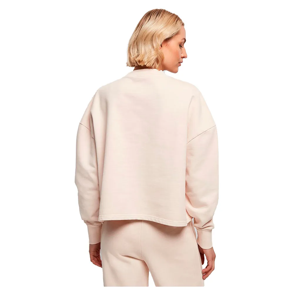 Женская кофта с круглым вырезом имеет спортивный и повседневный вид благодаря отбеленной ткани, свободному крою oversize, спущенной линии плеча и слегка разрезам по бокам. V-образная вставка спереди на ребристой круглой горловине создает акцент, а широкие манжеты также ребристой отделки. Женская кофта с круглым вырезом выполнена из плотного хлопкового махрового трикотажа.