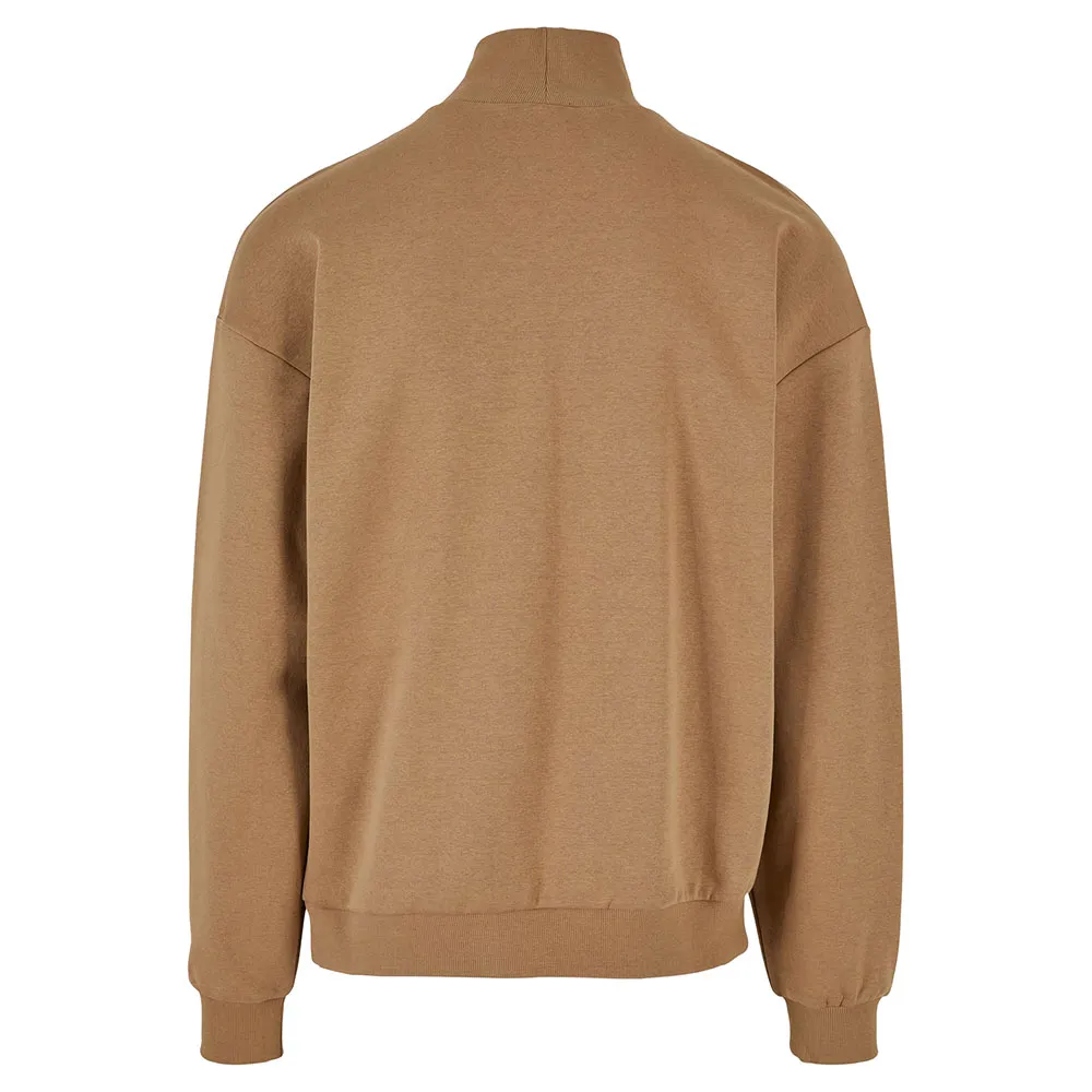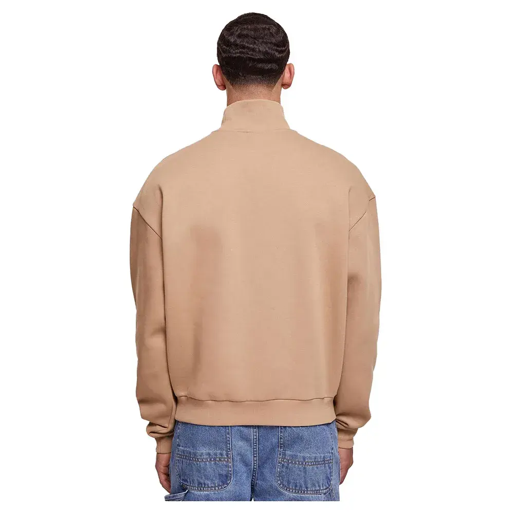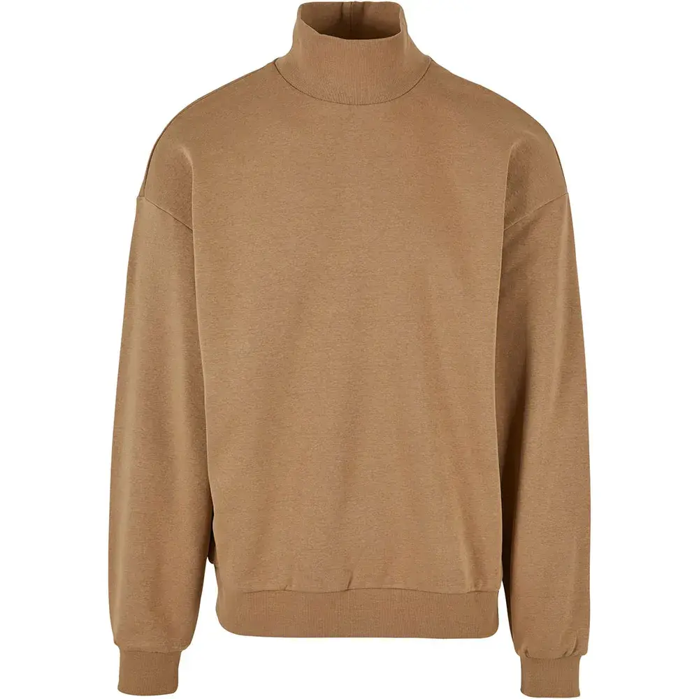 Мужская длинная кофта имеет лаконичный дизайн с высоким воротником-стойкой, свободным кроем со спущенной линией плеча и спортивными ребристыми манжетами на рукавах и подоле. Изготовлена из мягкого флиса с начесом, смеси полиэстера и хлопка.