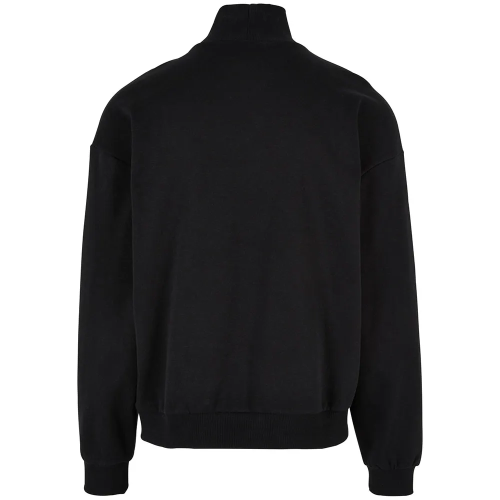 Мужская длинная кофта имеет лаконичный дизайн с высоким воротником-стойкой, свободным кроем со спущенной линией плеча и спортивными ребристыми манжетами на рукавах и подоле. Изготовлена из мягкого флиса с начесом, смеси полиэстера и хлопка.