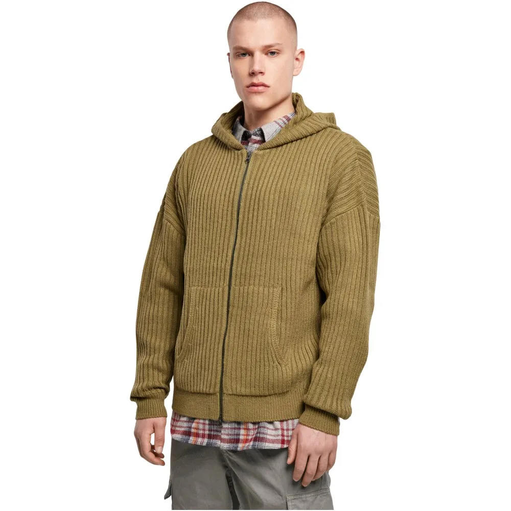Уютная и привлекательная трикотажная толстовка с капюшоном для мужчин, выполненная с крупным рельефным узором и застежкой-молнией спереди.