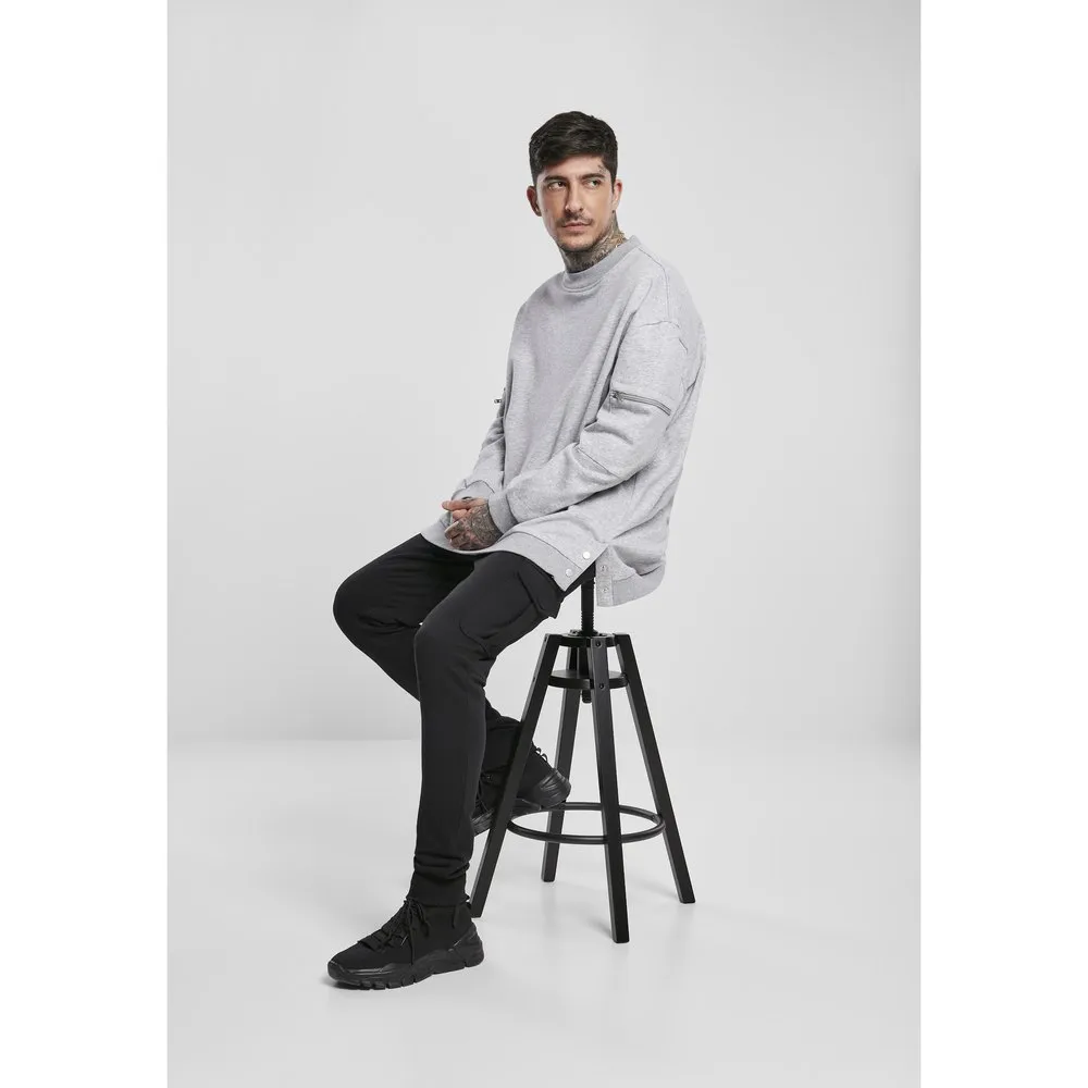 Удобный и одновременно мужественный. Этот свитер с длинными рукавами дарит ощущение неземного комфорта, как только вы его наденете. Он имеет выразительную ребристую структуру на горловине, подоле и рукавах. Современный свободный крой добавляет немного непринужденности. Практичные детали — два боковых кармана на молнии на рукавах, которые позволяют держать всё под рукой. Oberstoff 1: 65% Baumwolle, 35% полиэстер, махровая ткань, плотность 300 г/м²