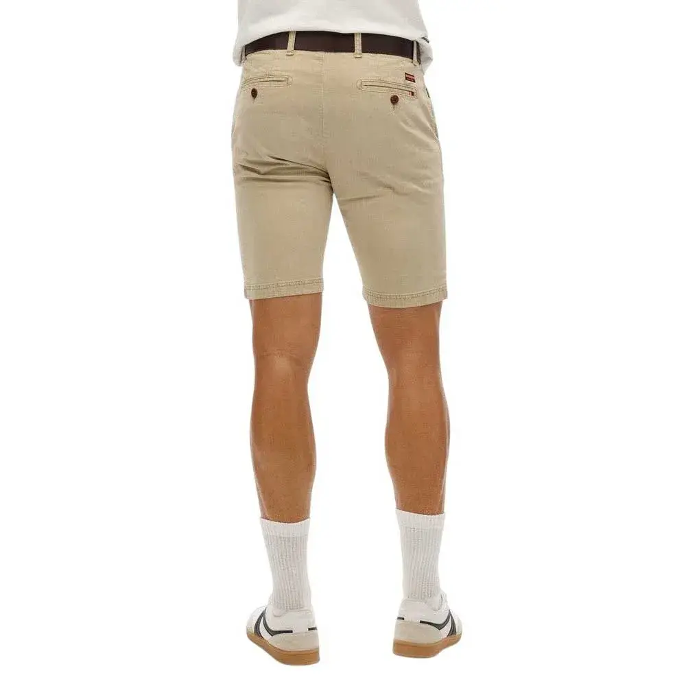 — разработан для более строгого облегания тела, застежка на молнию и пуговицы, петли для ремня, два боковых кармана, карман для монет, два задних кармана на пуговицах, фирменная нашивка Superdry.