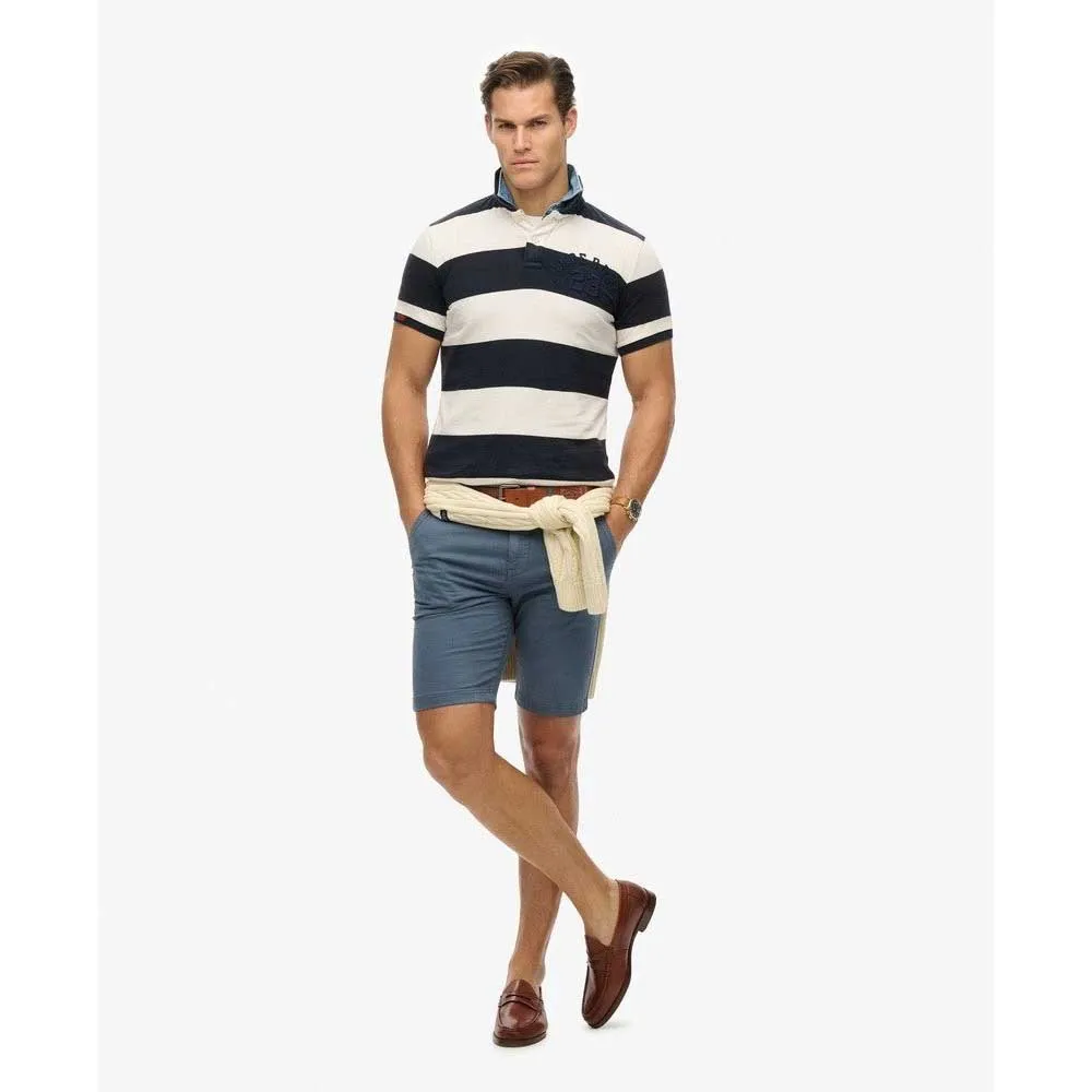 — разработан для более строгого облегания тела, застежка на молнию и пуговицы, петли для ремня, два боковых кармана, карман для монет, два задних кармана на пуговицах, фирменная нашивка Superdry.