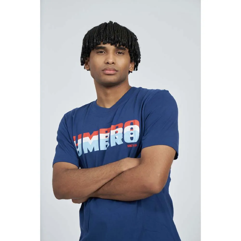 Футболка с коротким рукавом UMBRO с многослойным логотипом в цвете Estate Blue — стильное и удобное дополнение к гардеробу любого мужчины. Изготовленная из высококачественного хлопка, эта футболка имеет классический крой и круглый вырез. Фирменный логотип UMBRO, напечатанный в многослойном стиле спереди, добавляет современный штрих к простому дизайну. Эту универсальную футболку можно носить с джинсами или шортами, создавая непринужденный и непринужденный образ. Футболка с коротким рукавом UMBRO с многослойным логотипом идеально подходит для повседневной носки или в качестве яркого элемента для вечернего выхода. Она станет незаменимой вещью для любого модника.