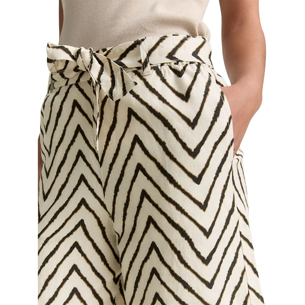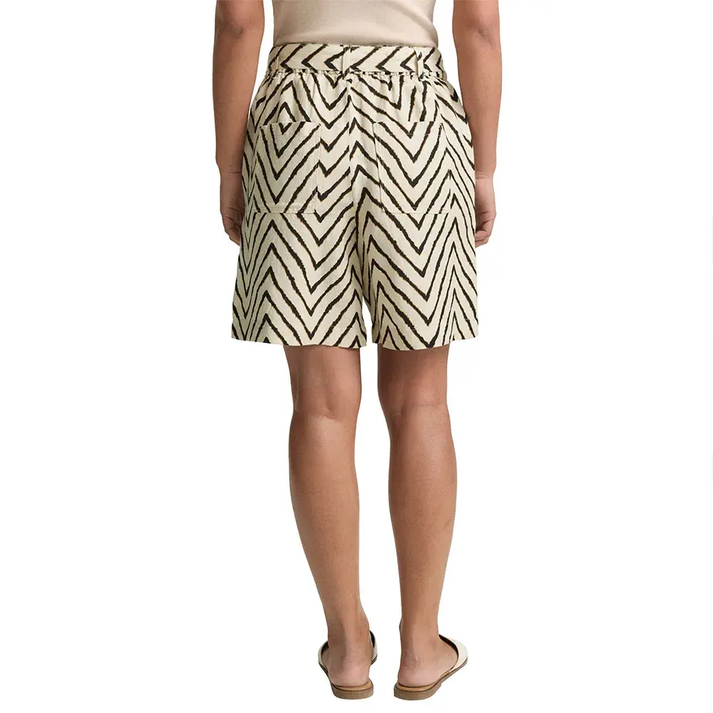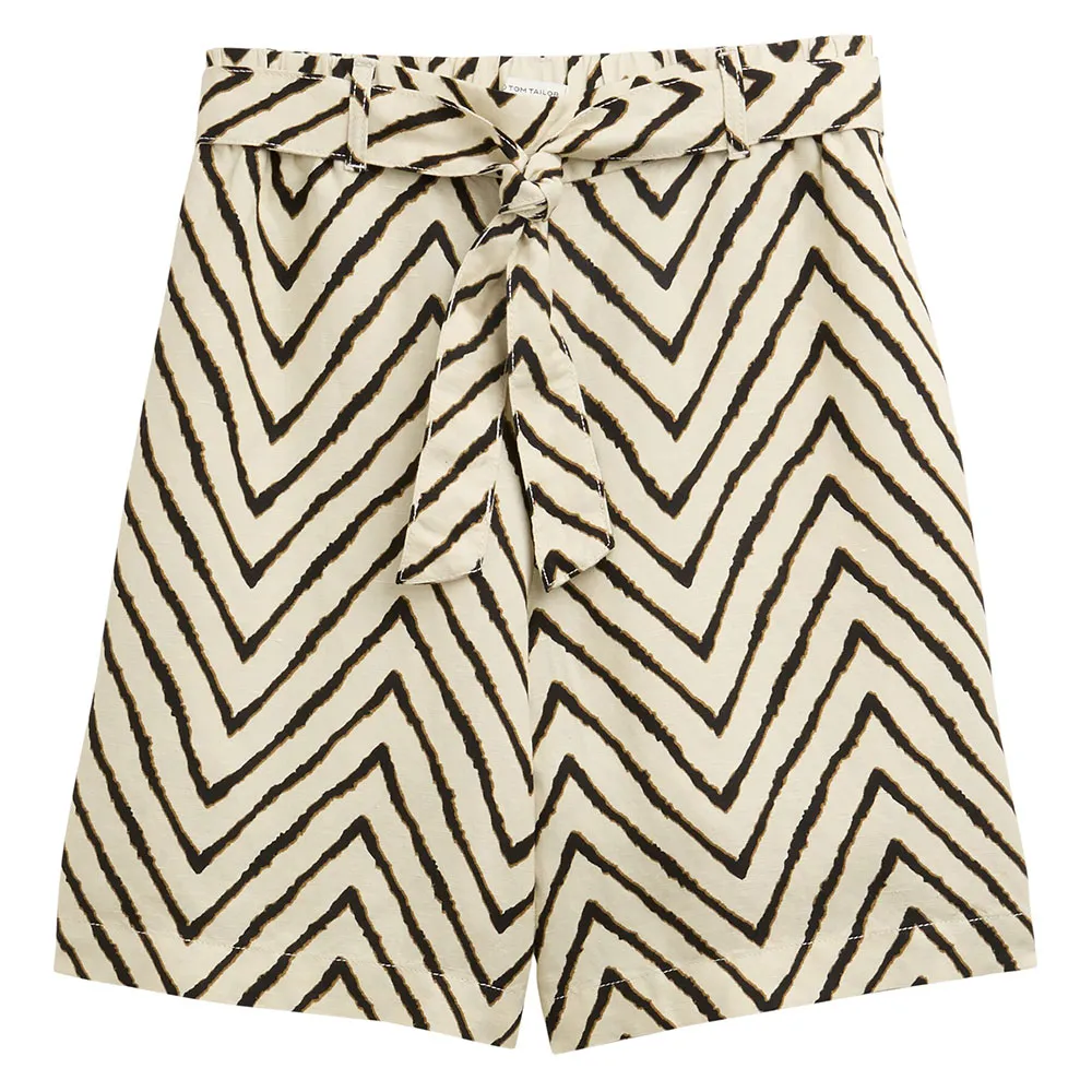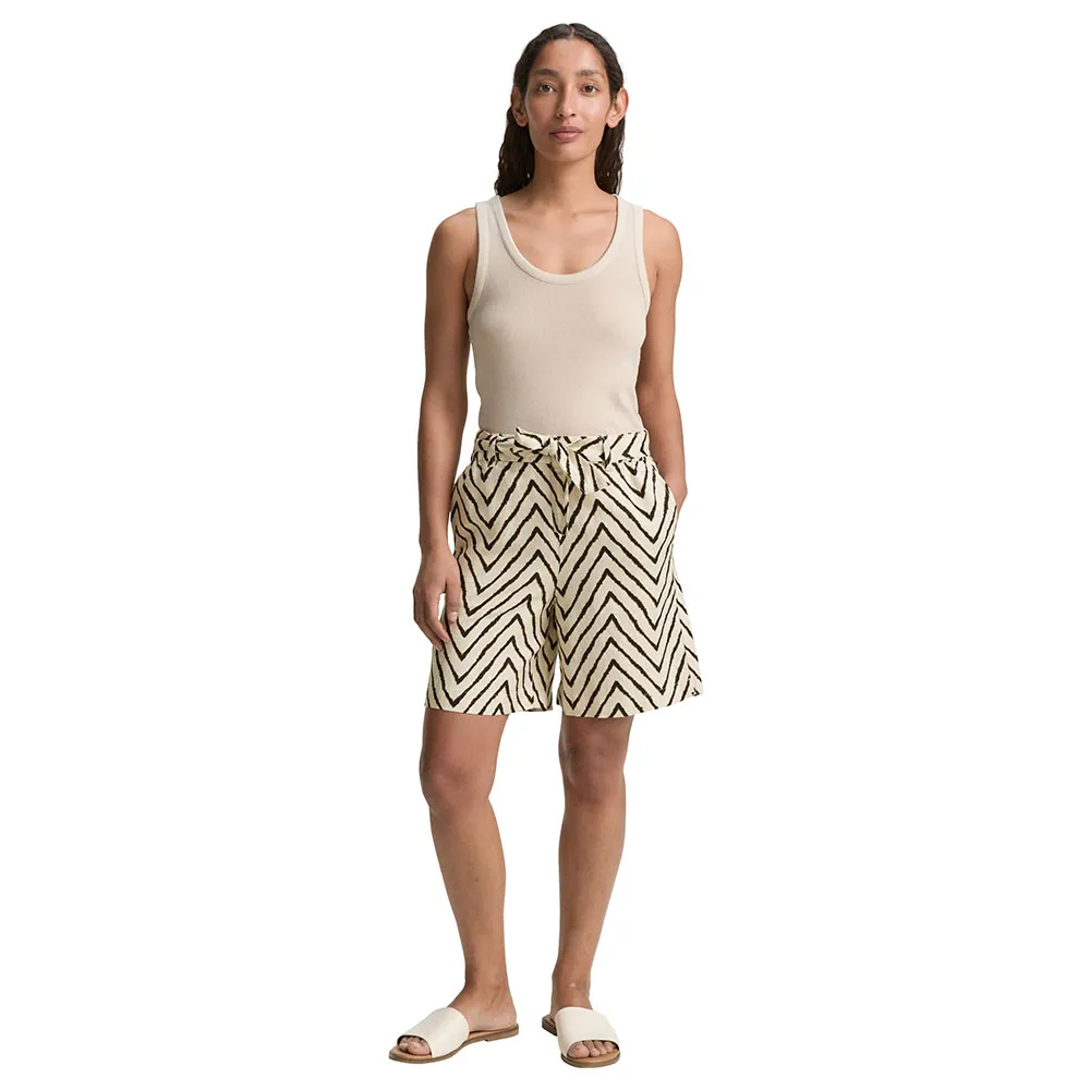 Льняные шорты с эластичным поясом и завязывающимся поясом.