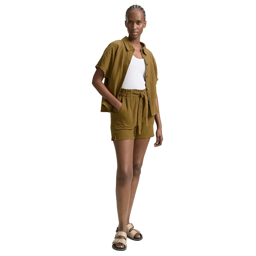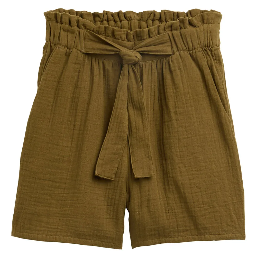Шорты свободного кроя с эластичным поясом для завязывания.