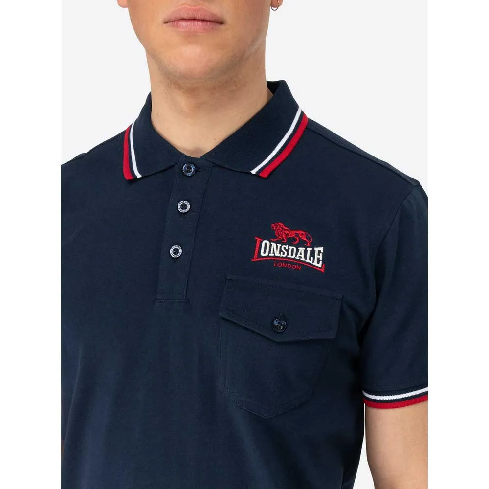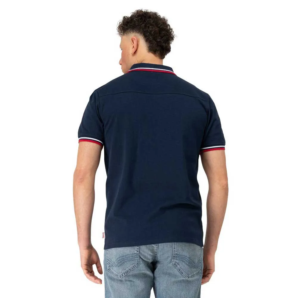 Рубашка-поло с контрастными деталями, такими как вышивка на левой стороне груди и полоски на воротнике и подгибе рукавов. Под вышитым логотипом находится удобный нагрудный карман.