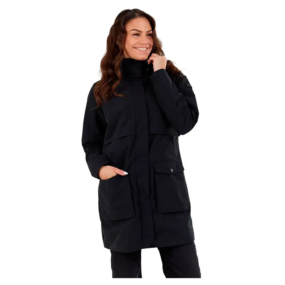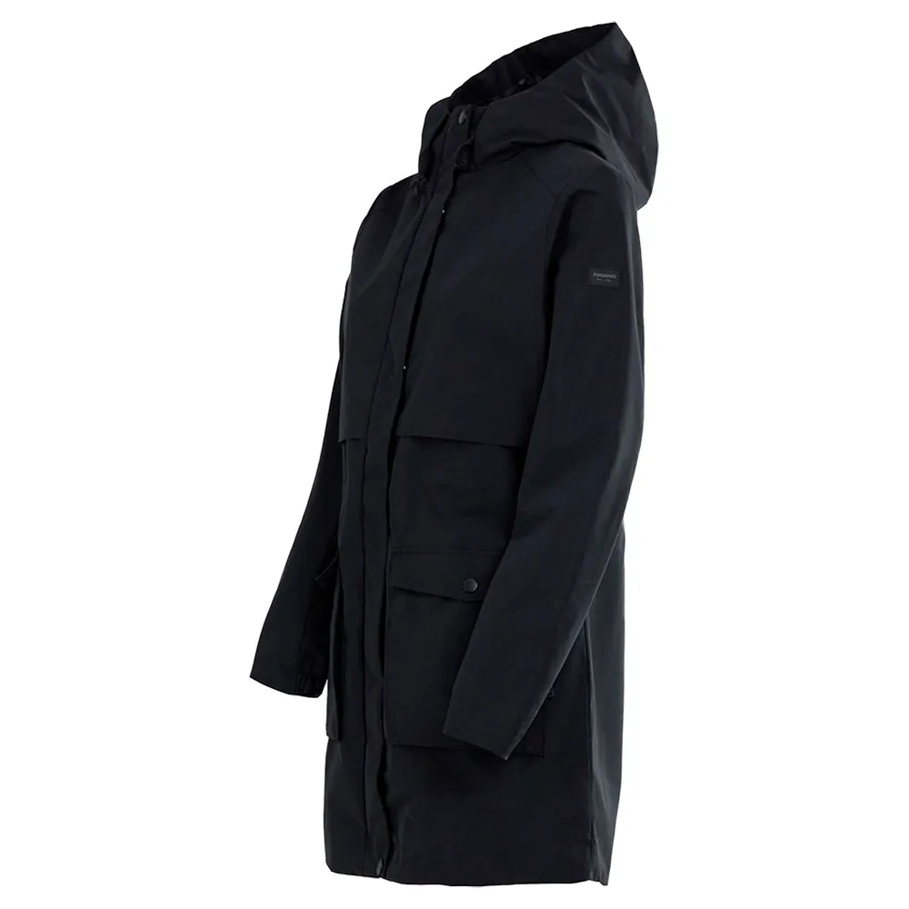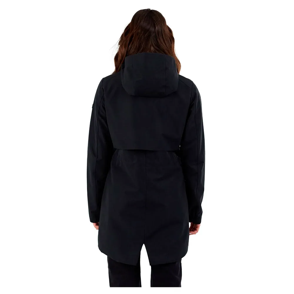 В женской ветрозащитной куртке Fundango Zhuri Waterproof вы сможете стильно провести хмурые дни! Регулируемый пояс, основная молния с клапаном и капюшон, регулируемый шнурком, защитят вас от холодного ветра.