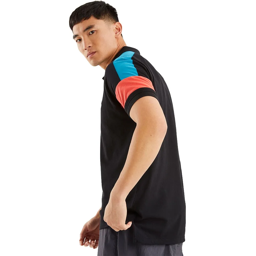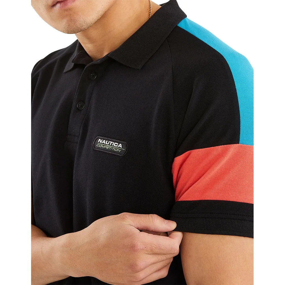 Мужская рубашка-поло с коротким рукавом от бренда NAUTICA, изготовленная из хлопка с цветной деталью на рукаве и прорезиненным логотипом.