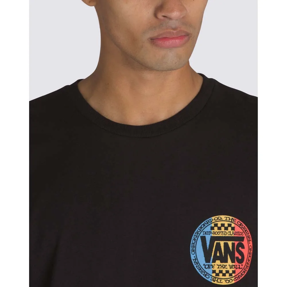 Раскрасьте себя в футболку Retro Co — классическую футболку с короткими рукавами и круглым вырезом, с трафаретной печатью логотипа Vans старой школы спереди и увеличенной версией того же логотипа сзади.