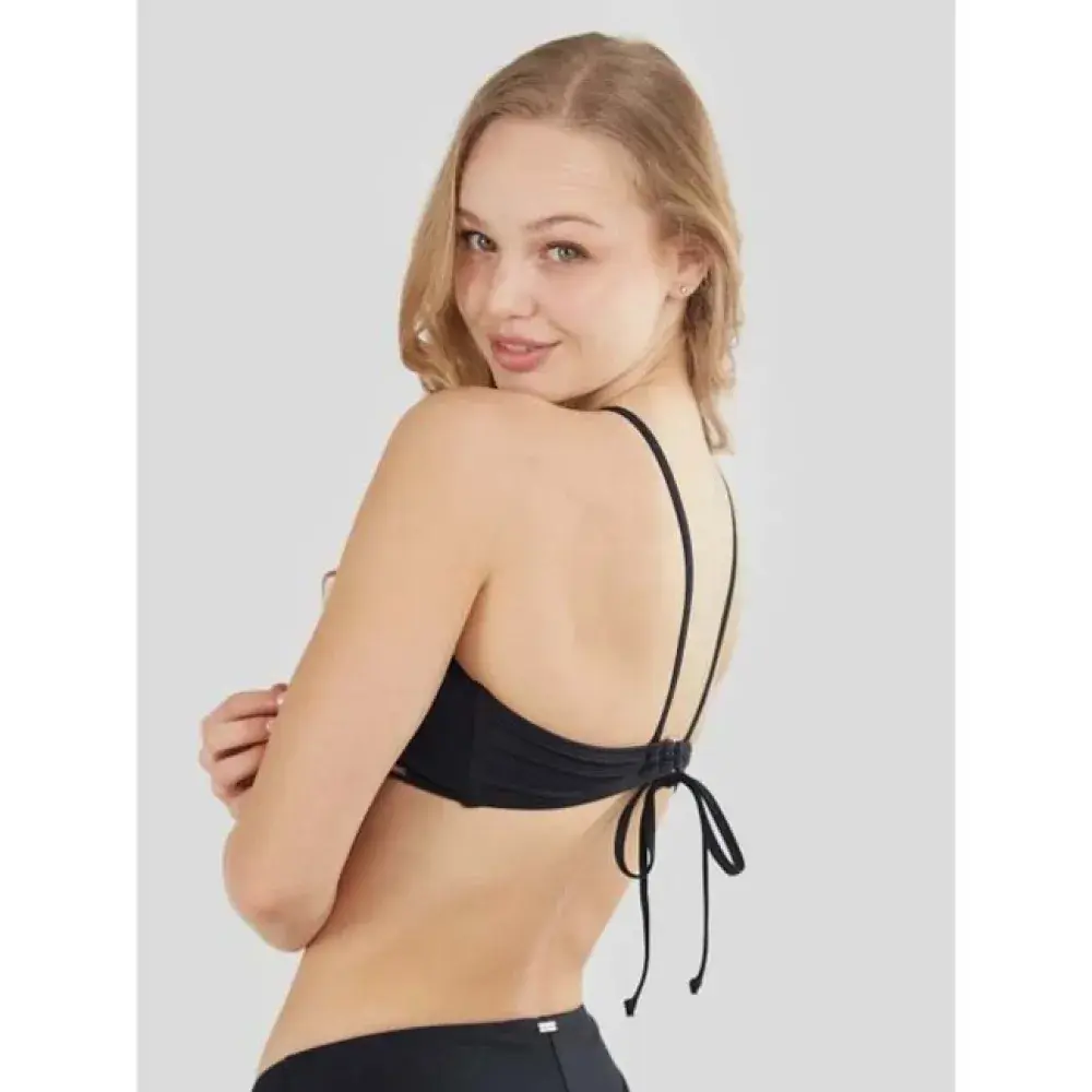 Ткань, на 85% состоящая из переработанных материалов, быстросохнущая, и вшитые подушечки гарантируют максимальный комфорт на пляже.