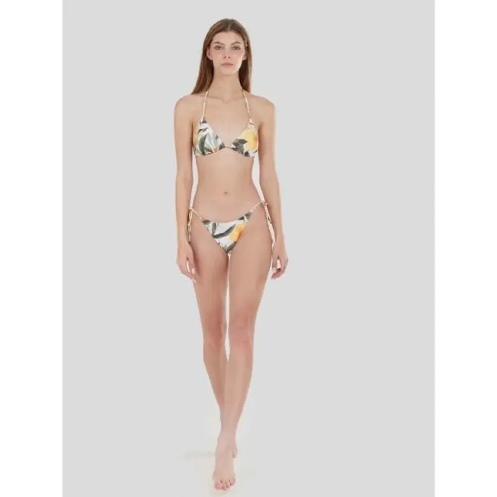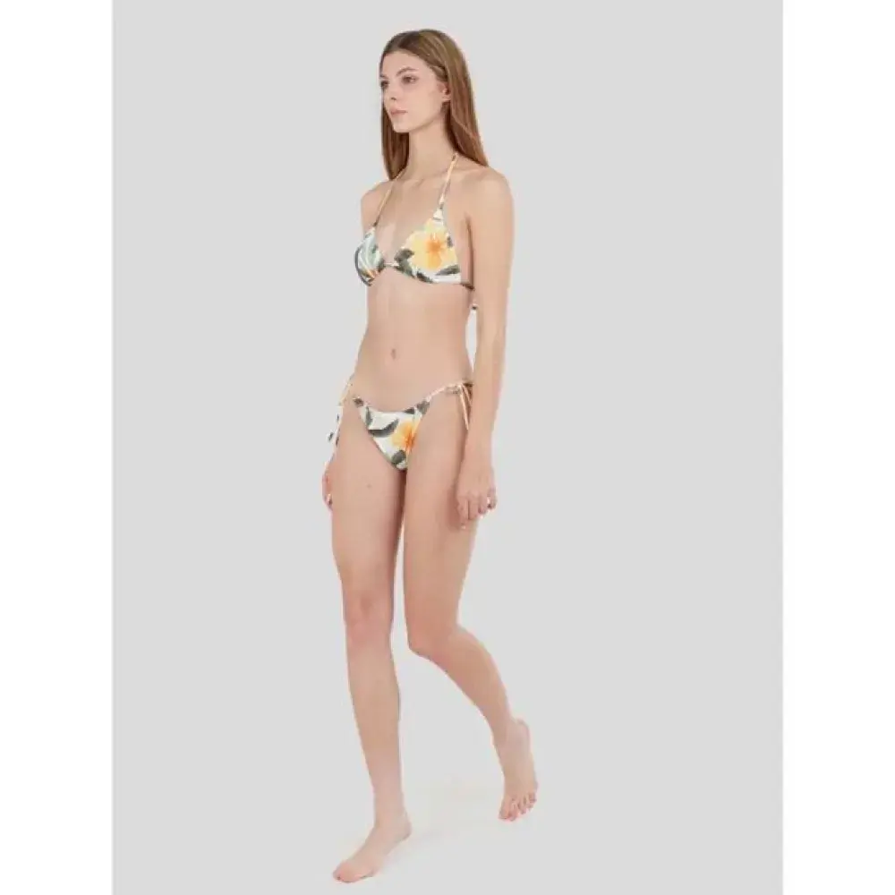 Треугольный вырез с халтер-бретелькой выглядит женственно на всех типах фигуры, а регулируемые бретели и съемные подушечки позволяют полностью персонализировать бикини несколькими простыми движениями.