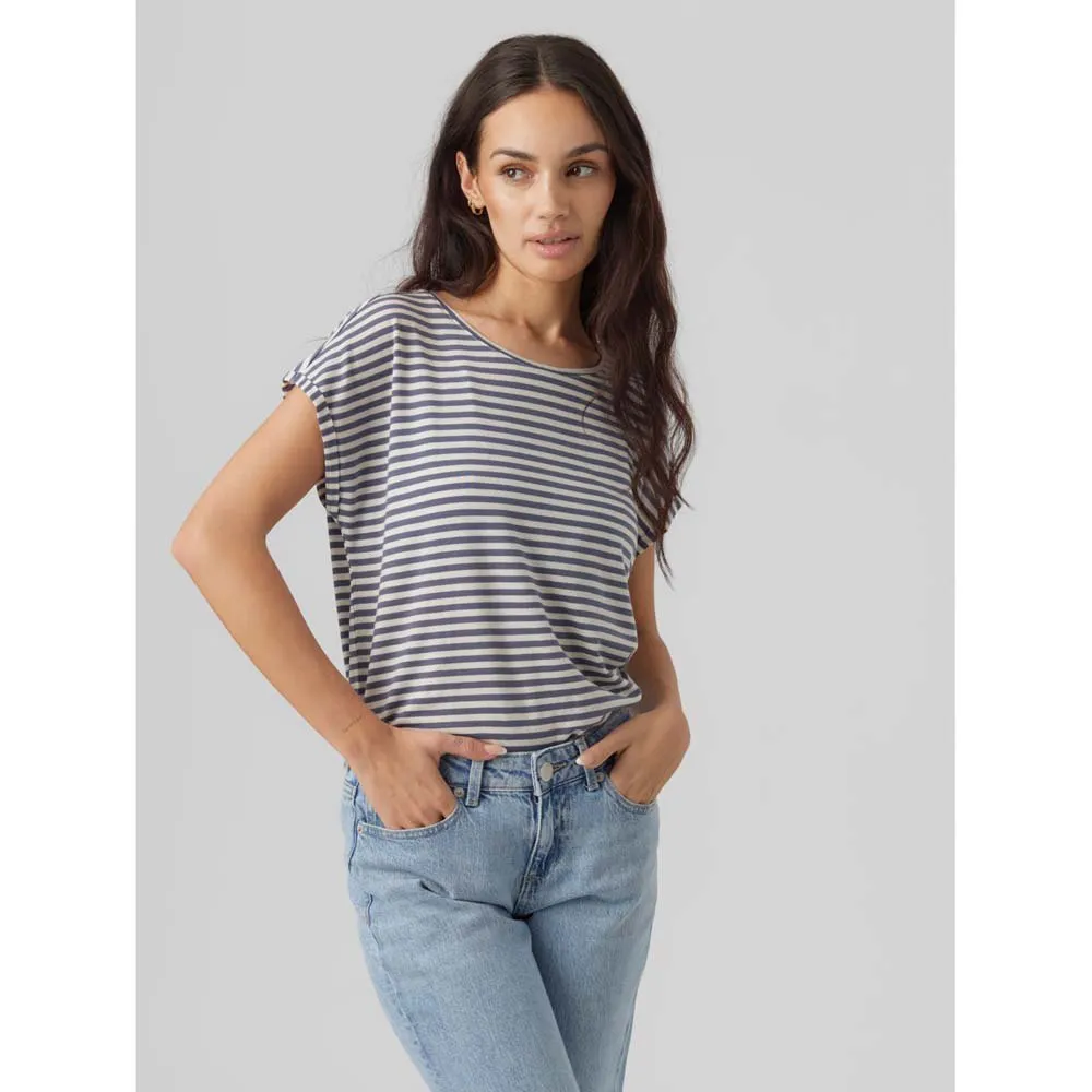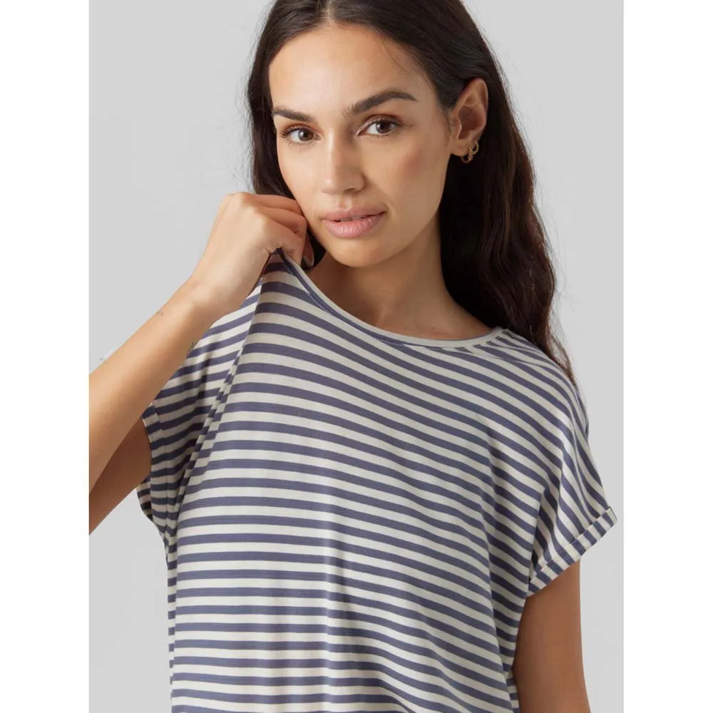 Полосатая футболка со спущенными плечами, круглым вырезом и подвернутыми рукавами. Сочетайте эту милую футболку с джинсами и любимыми кроссовками для создания непринужденного образа.