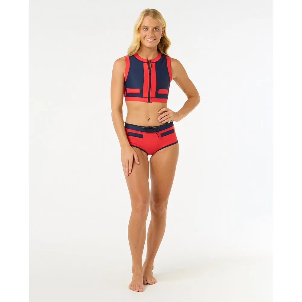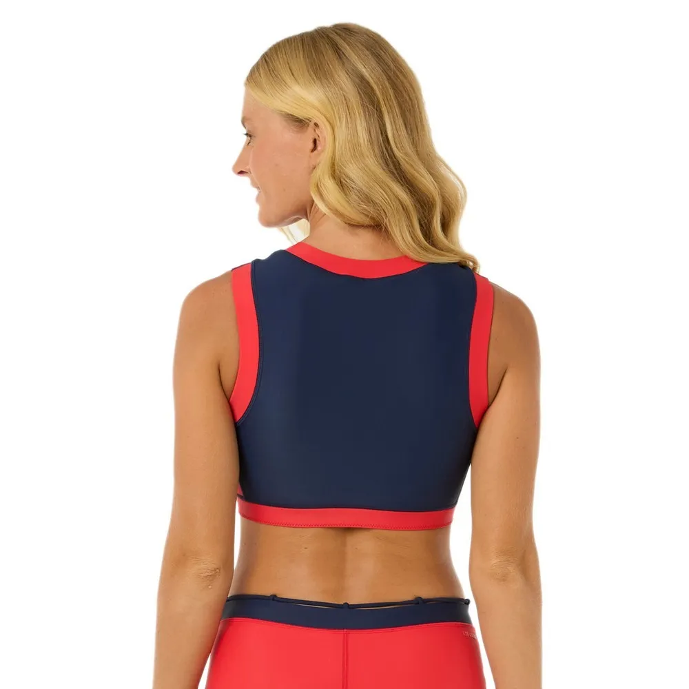 78 % полиамида и 22 % эластана, связанный полиамид, логотипы, нанесенные методом термопереноса высокой плотности, плоским швом, молния спереди, принт на внутренней стороне горловины, ярлычок-подвеска, контрастная внутренняя подкладка.