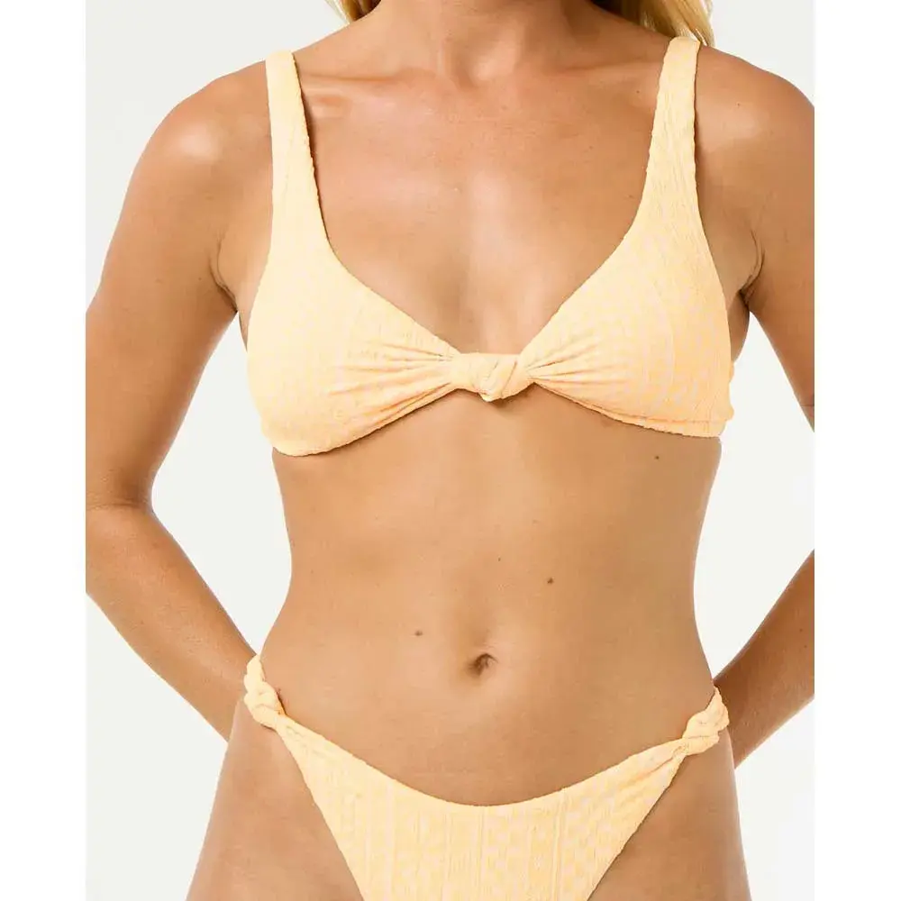 Этот легкий топ с треугольными чашечками, обеспечивающий поддержку, завязывается узлом спереди и имеет съемную подкладку.