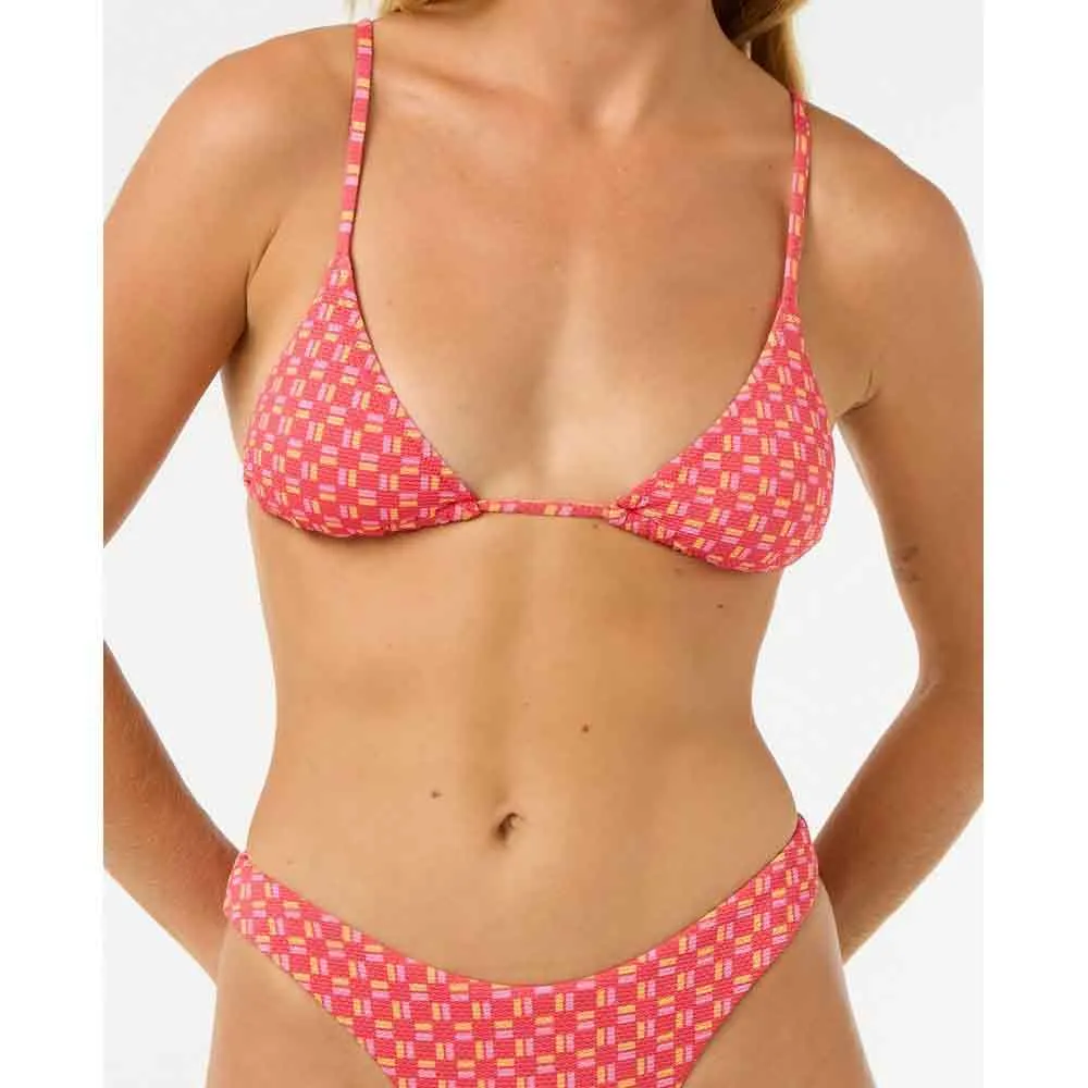 Этот бикини-топ обеспечивает легкую поддержку благодаря раздвижным треугольным частям, изготовленным из ткани Lurex Pique (85 % полиамида, 12 % эластана, 3 % металлика).