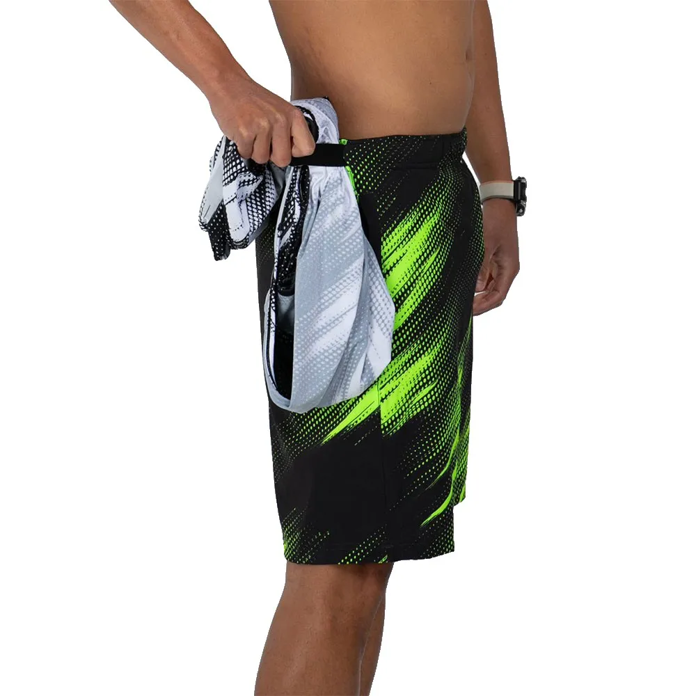 Эластичный Пояс со шнурком спереди надежно фиксирует шорты.