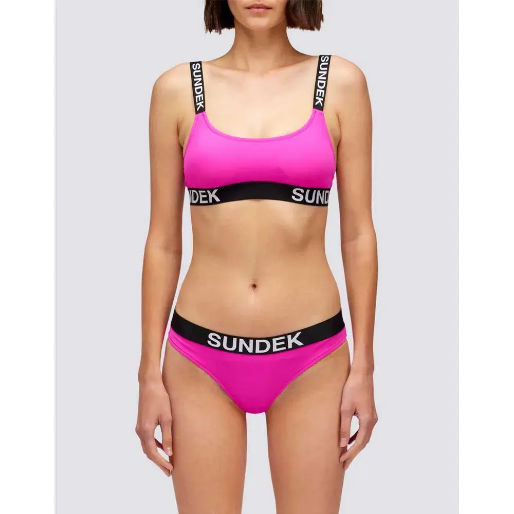 Этот бюстгальтер-балконет без подкладок изготовлен из экологически чистой и удобной ткани и дополнен контрастной жаккардовой резинкой с логотипом Sundek.