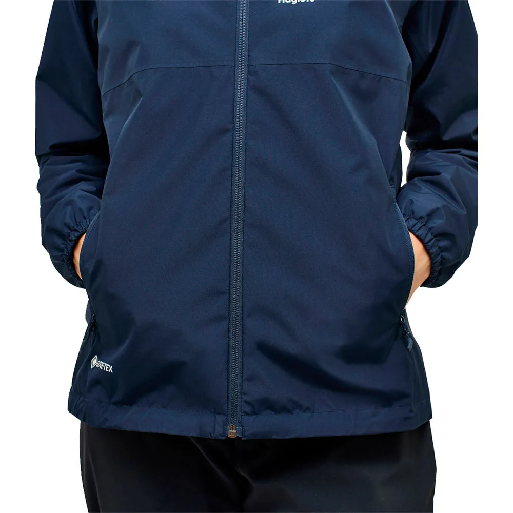 Состав:-GORE-TEX полотняного переплетения 2L, с ламинатом ePE, 100% переработанный полиэстер, 75 денье, Гидростатическое давление: 28 000 мм, Водопроницаемость RET: 13, без ПФАС DWR, 165 г/м², одобрено Bluesign., Трикотажная сетка, 100% переработанный полиэстер, 60 г/м², одобрено Bluesign., Ткань Tafetta, 100% переработанный полиэстер, 75 денье, 83 г/м², одобрено bluesign., Ткань 79% полиамид, 21% полиуретан, без ПФАС DWR, 134 г/м², bluesign. одобрено.