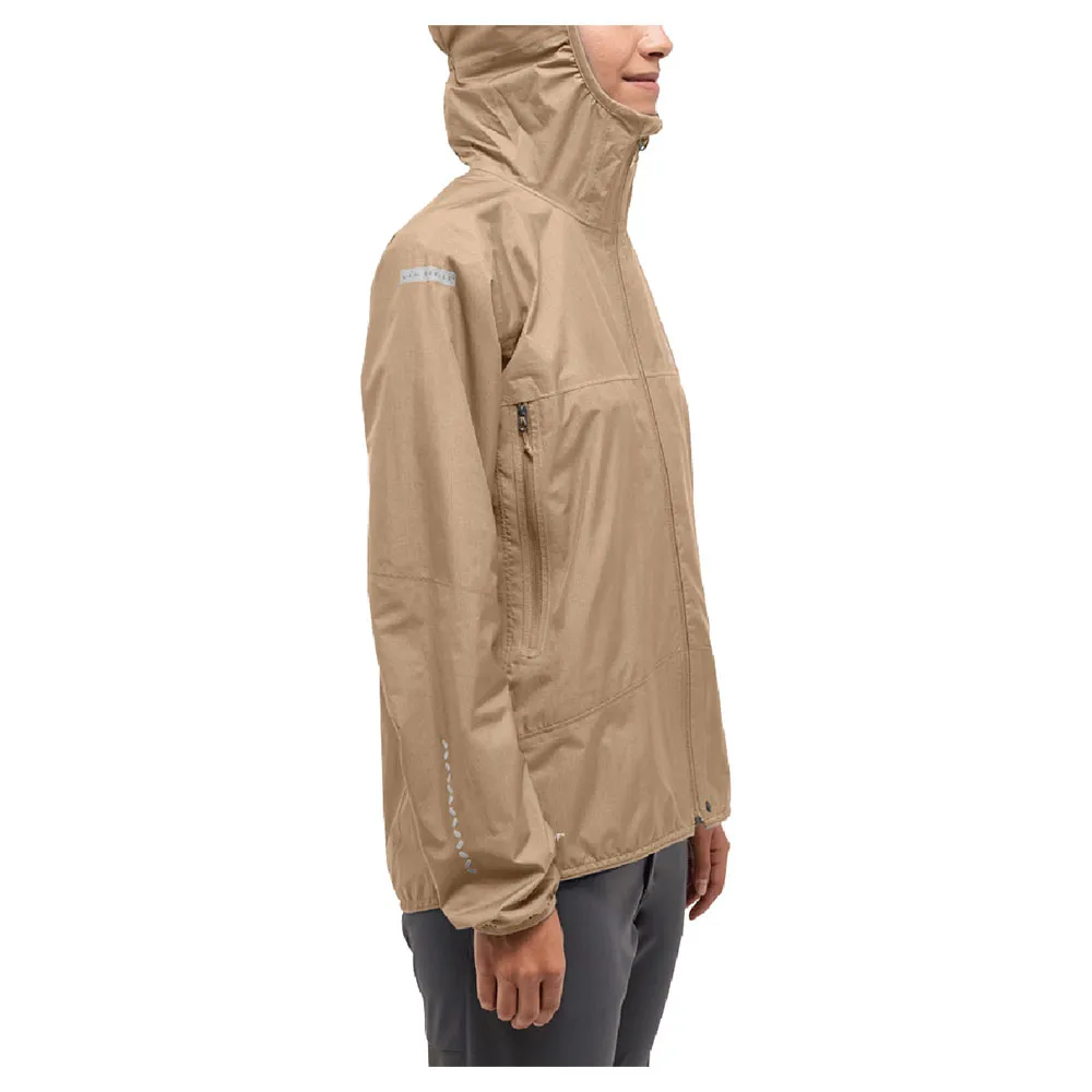 Она имеет спортивный крой, карманы для рук на молнии, плотно прилегающий капюшон и светоотражающие детали для безопасности.