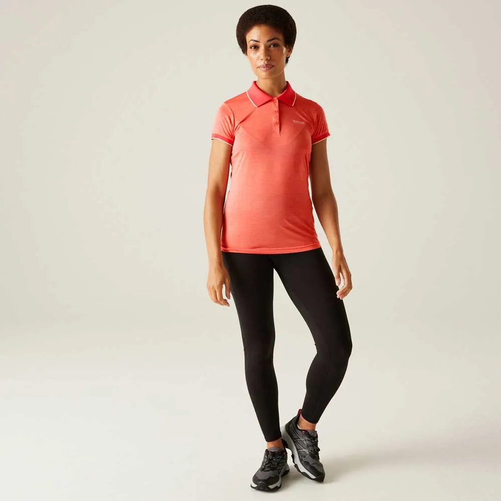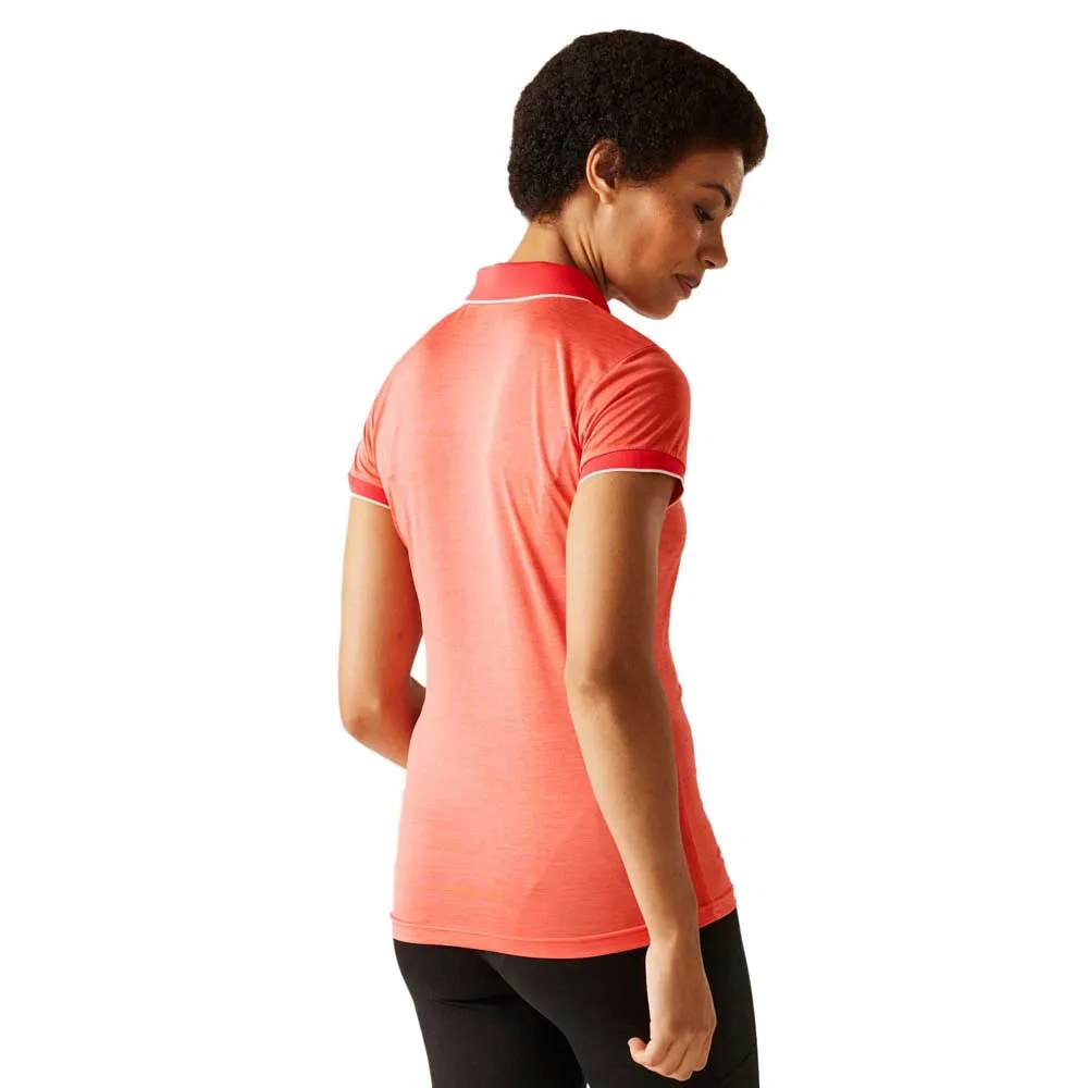 Рубашка-поло с короткими рукавами из влагоотводящего, быстросохнущего джерси. Для походов на вершины, питч-энд-патт или прогулок по побережью. Мягкая на ощупь меланжевая полиэстеровая ткань обеспечивает прохладную вентиляцию и очень приятна на ощупь. Классическая застежка на три пуговицы, лёгкий ребристый воротник и манжеты. С фирменным принтом Regatta на груди.