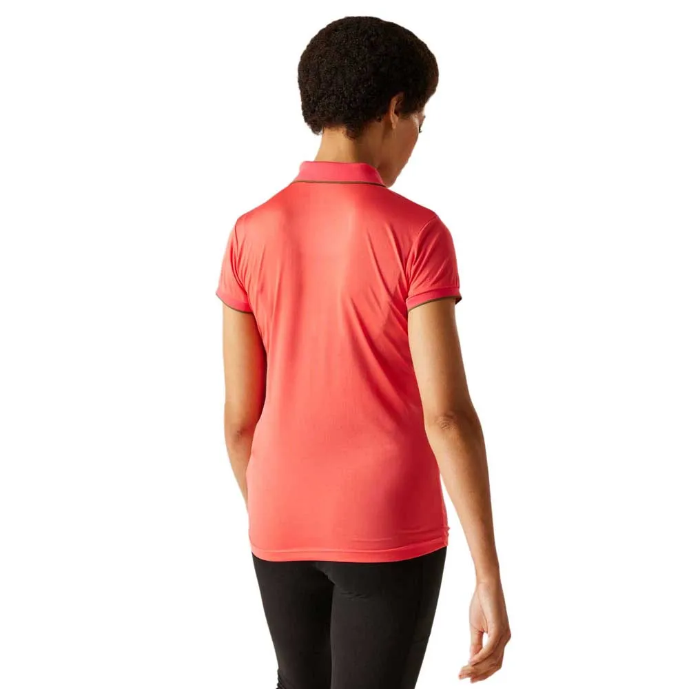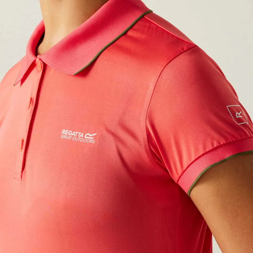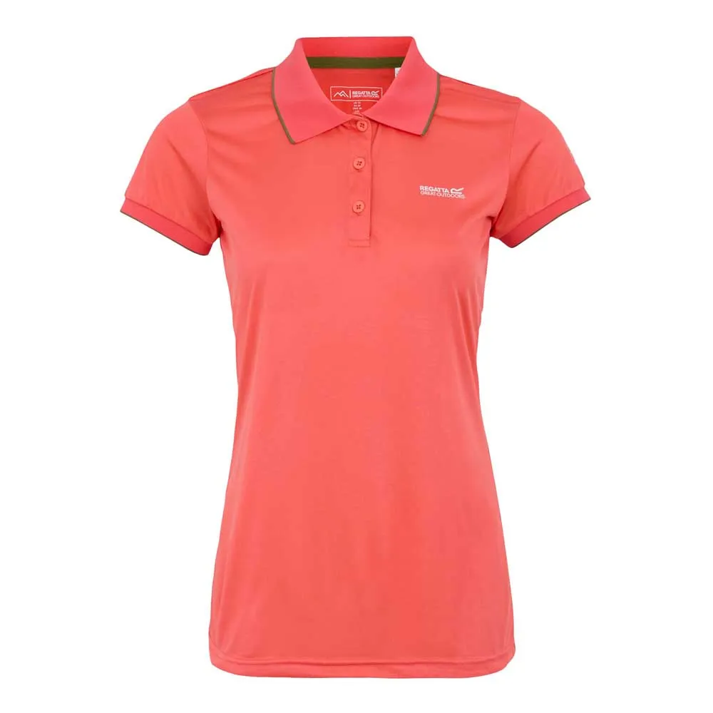 Рубашка-поло с короткими рукавами из влагоотводящего, быстросохнущего джерси. Для походов на вершины, питч-энд-патт или прогулок по побережью. Мягкая на ощупь меланжевая полиэстеровая ткань обеспечивает прохладную вентиляцию и очень приятна на ощупь. Классическая застежка на три пуговицы, лёгкий ребристый воротник и манжеты. С фирменным принтом Regatta на груди.