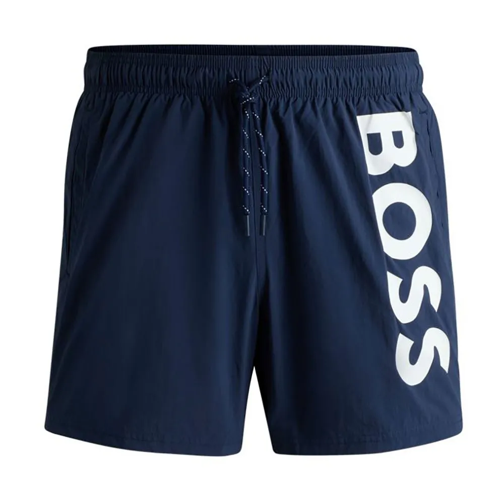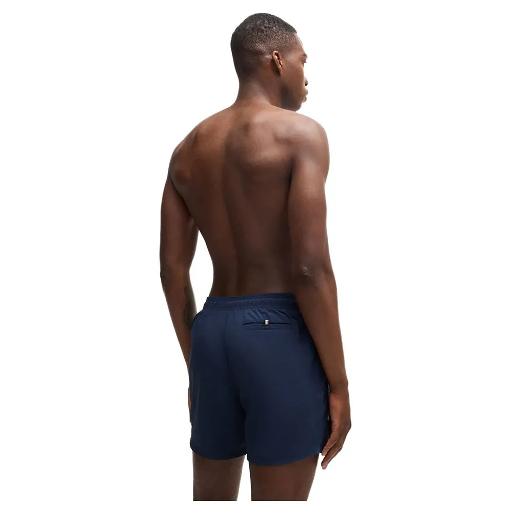 Переработанный полиамид / Быстросохнущая ткань / Внешний шнур / Печать логотипа на левой штанине / Задние карманы / Длина 38 см для размера M.