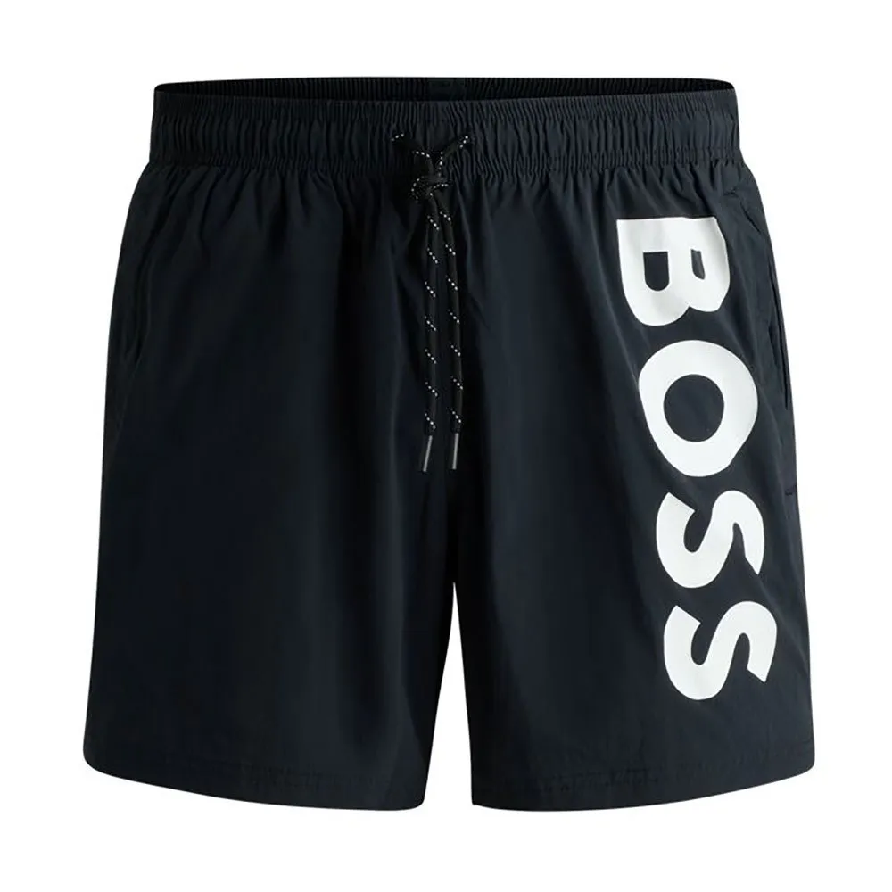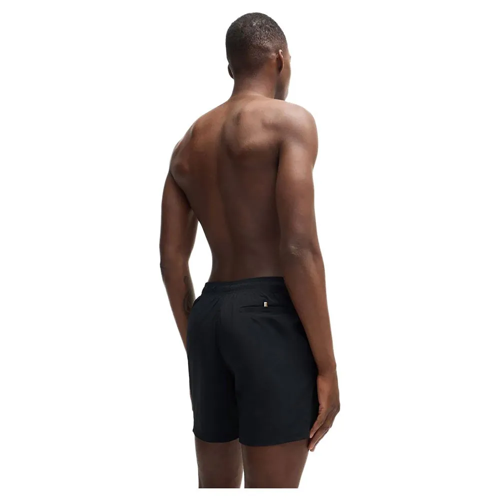 Переработанный полиамид / Быстросохнущая ткань / Внешний шнур / Печать логотипа на левой штанине / Задние карманы / Длина 38 см для размера M.