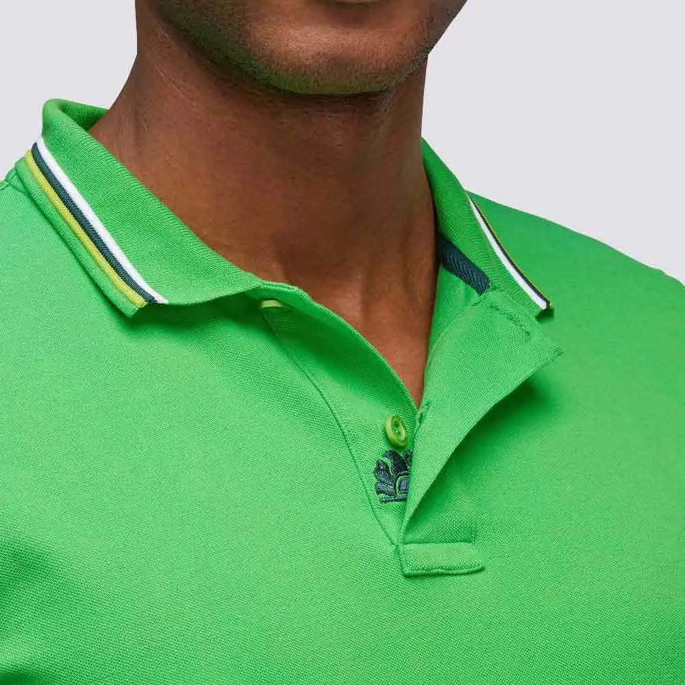 Это поло с коротким рукавом легко перейдет от повседневных прогулок до более изысканных мероприятий. Классический дизайн с традиционным воротником и планкой на пуговицах позволит вам персонализировать свой образ. Короткие рукава обеспечивают оптимальную воздухопроницаемость, гарантируя вам прохладу и комфорт в течение всего дня.