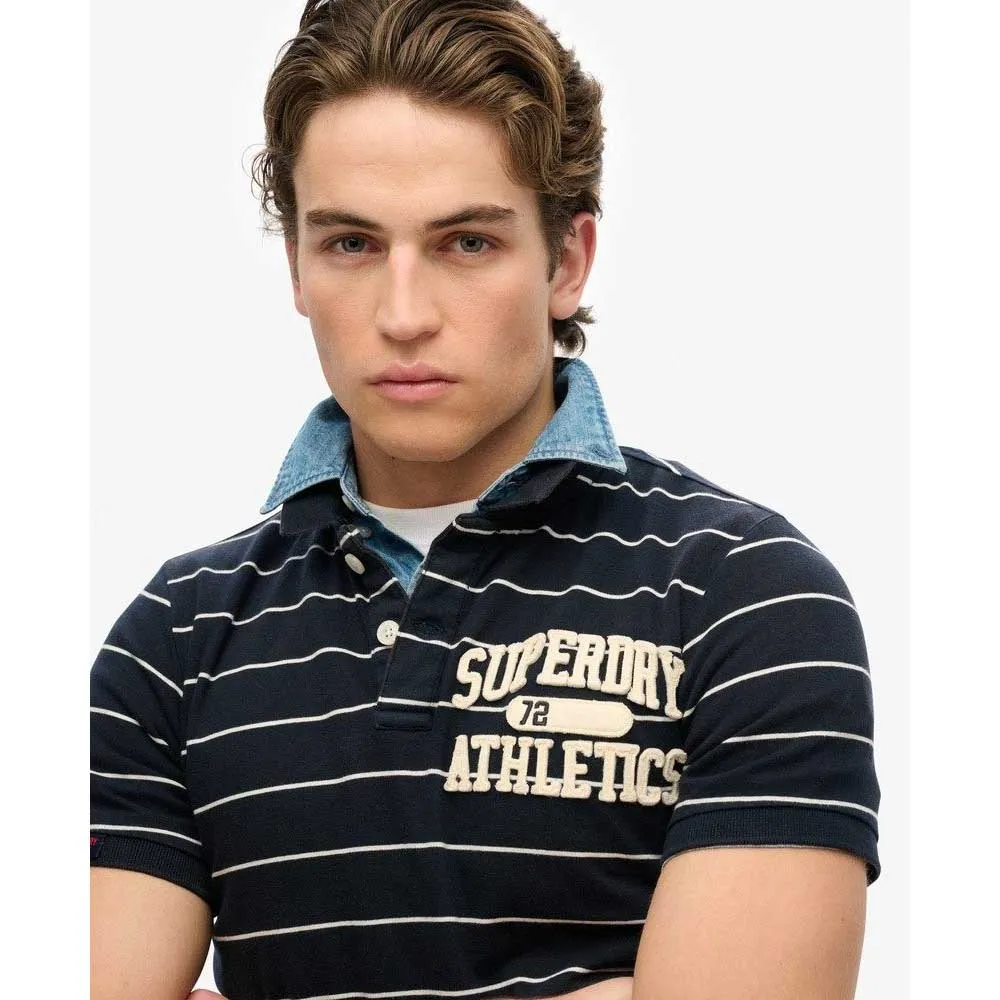Рубашка поло Vintage Athletic Jersey с большим вышитым логотипом на груди имеет отчетливо выраженный винтажный дух, поэтому вы можете окунуться в ретро-стиль в роскоши супермягкого трикотажа.