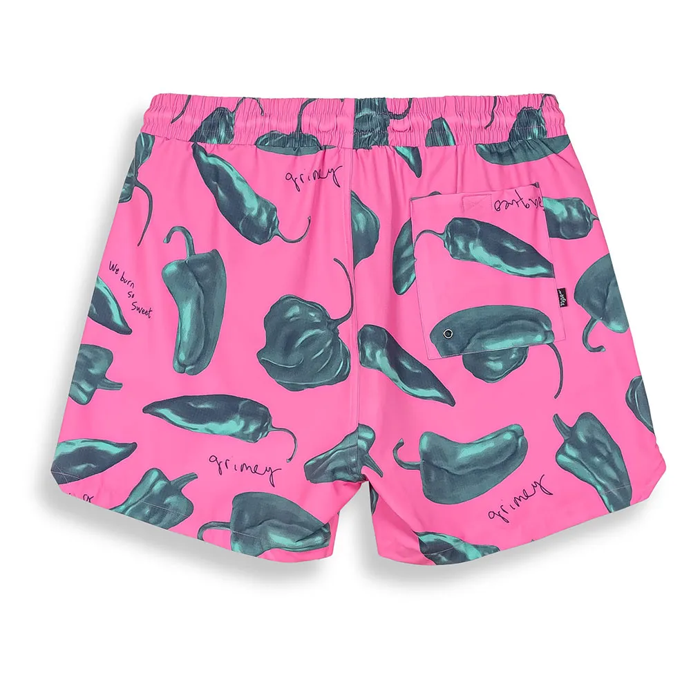 RED HOT предлагает плавательные шорты и дышащие ткани насыщенных цветов с принтами по всей поверхности.