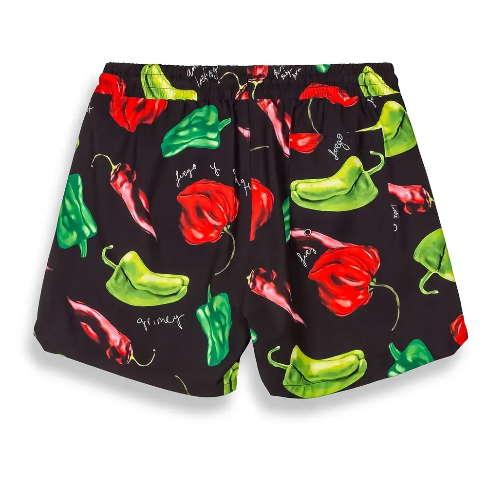 RED HOT предлагает плавательные шорты и дышащие ткани насыщенных цветов с принтами по всей поверхности.