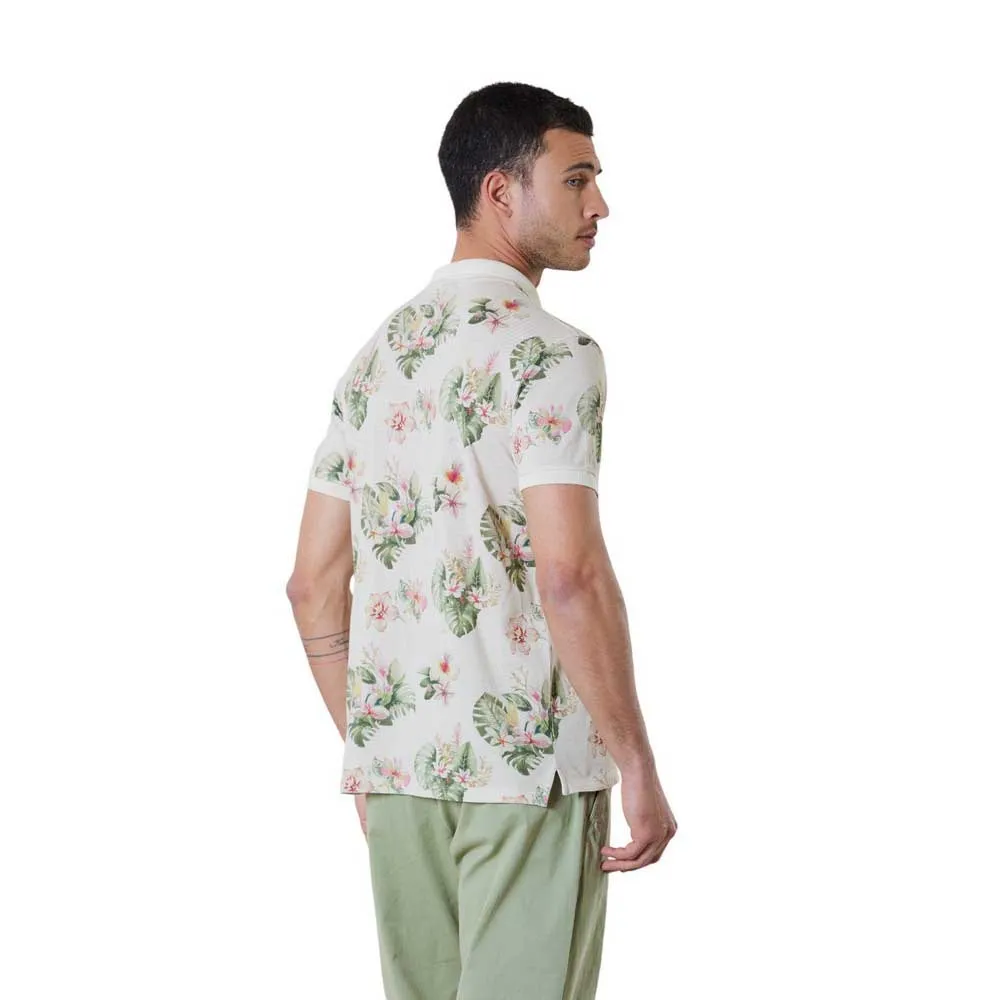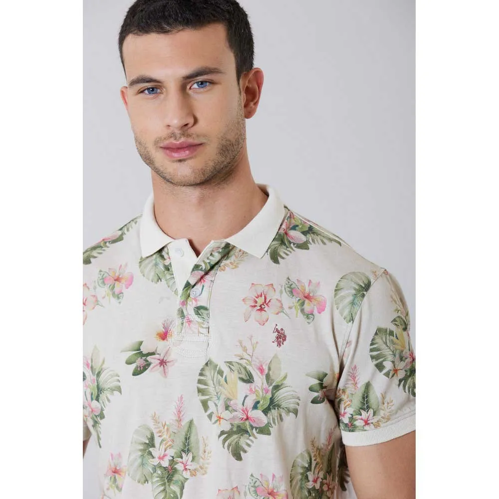 Поло Flow Us Polo Assn с короткими рукавами, пике-меланж с принтом, с ручной стиркой, застежкой на пуговицы до середины груди, цветочным принтом по всей поверхности, контрастным воротником и рукавами. Изготовлено из 100% хлопка.