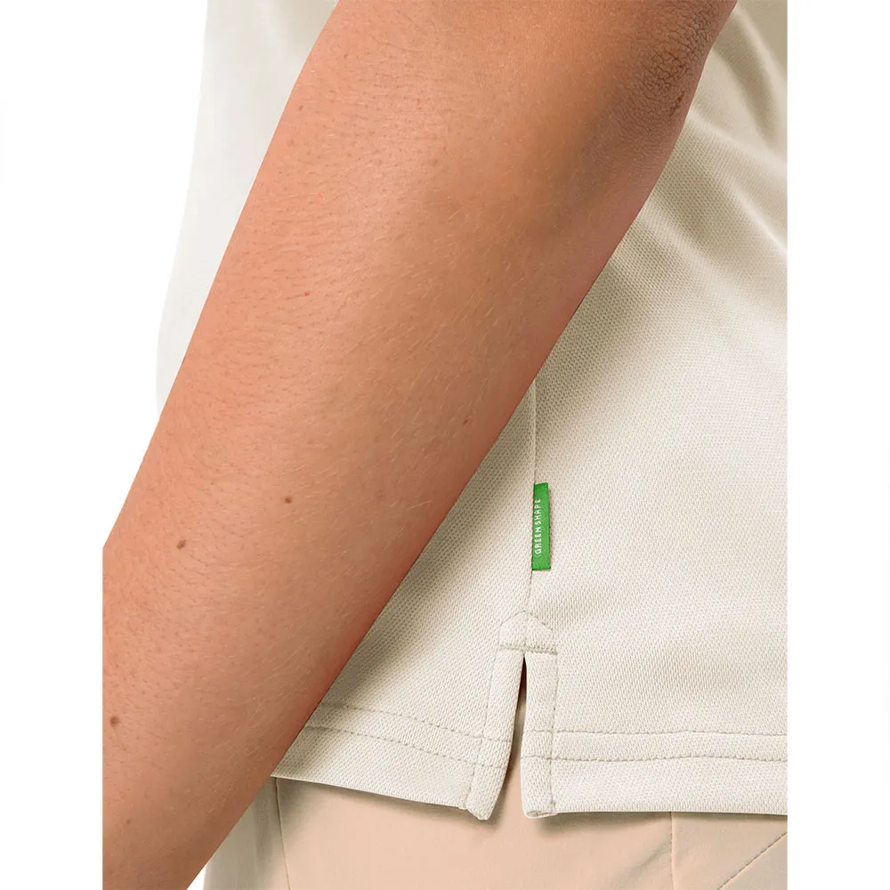 Женская рубашка-поло изготовлена из 100% переработанный полиэстер, в том числе переработанный полиэстер S-Cafe.