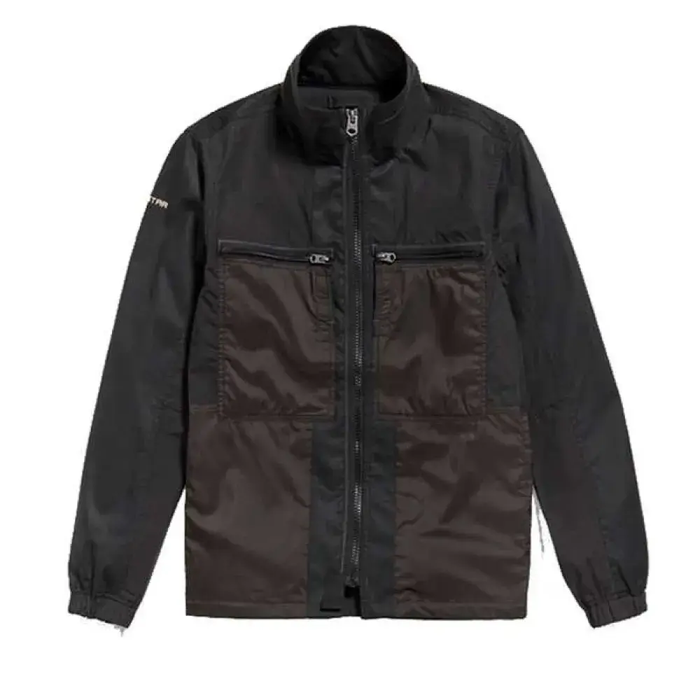 Overshirt Fabric Mix предлагает нагрудные карманы на молнии с боковыми разрезами.